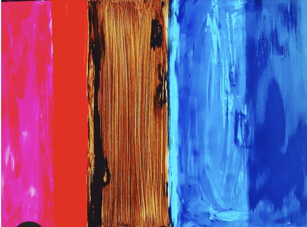 Abstrakcja na płótnie, technika: akryl, olej, wymiary 70x100 cm, sygnowana, 2023 r.