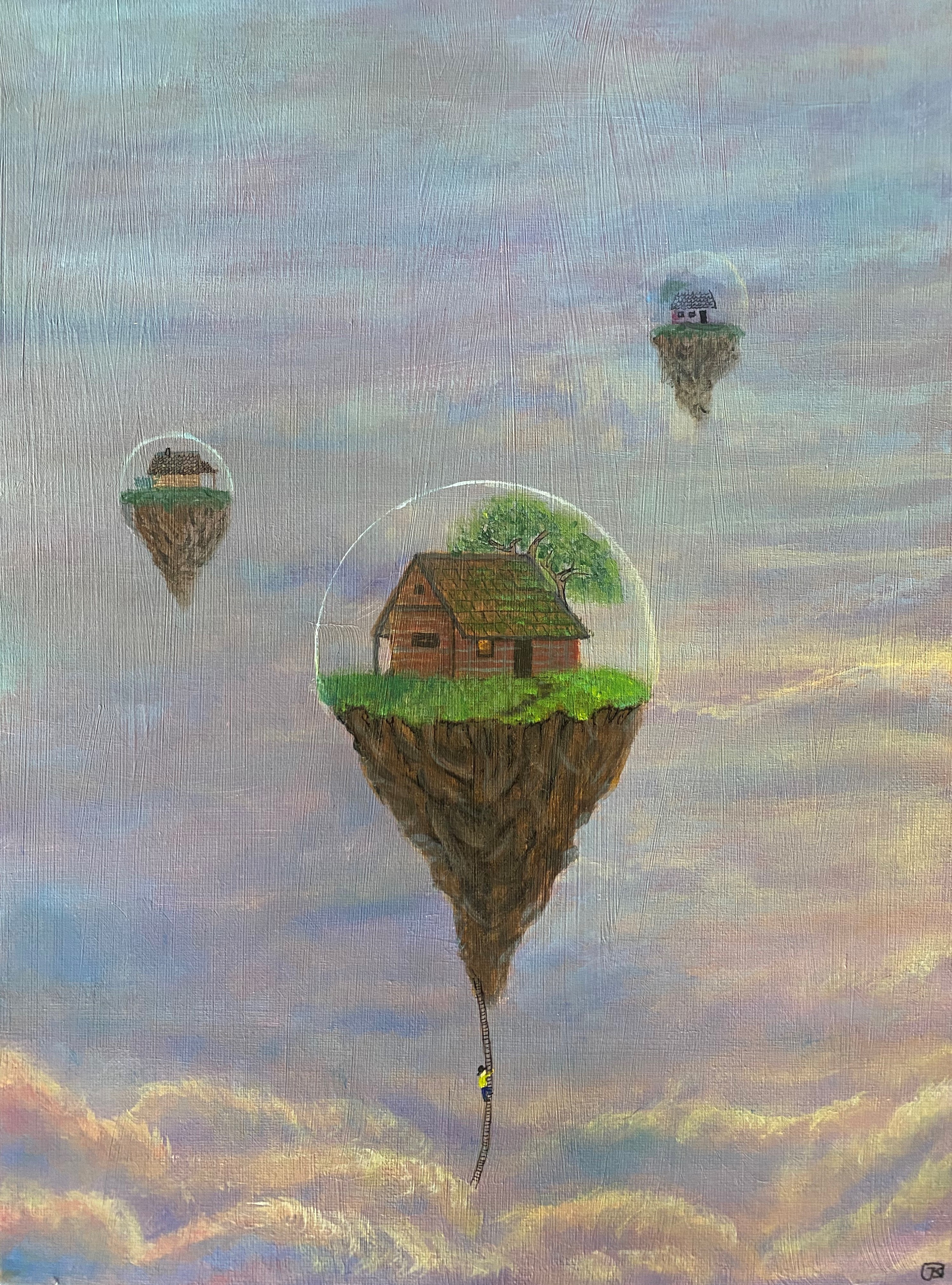 akryl, płótno, 40 x 30 cm, sygn. p.d.: monogramem oraz na odwrocie