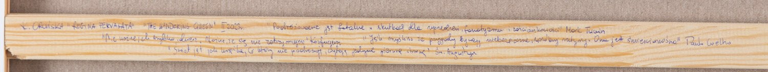 sygnowany, datowany i opisany na odwrociu: 'K. OROŃSKA "REGINA PERVAGATA" "THE WANDERING QUEEN" III 2023 r.'