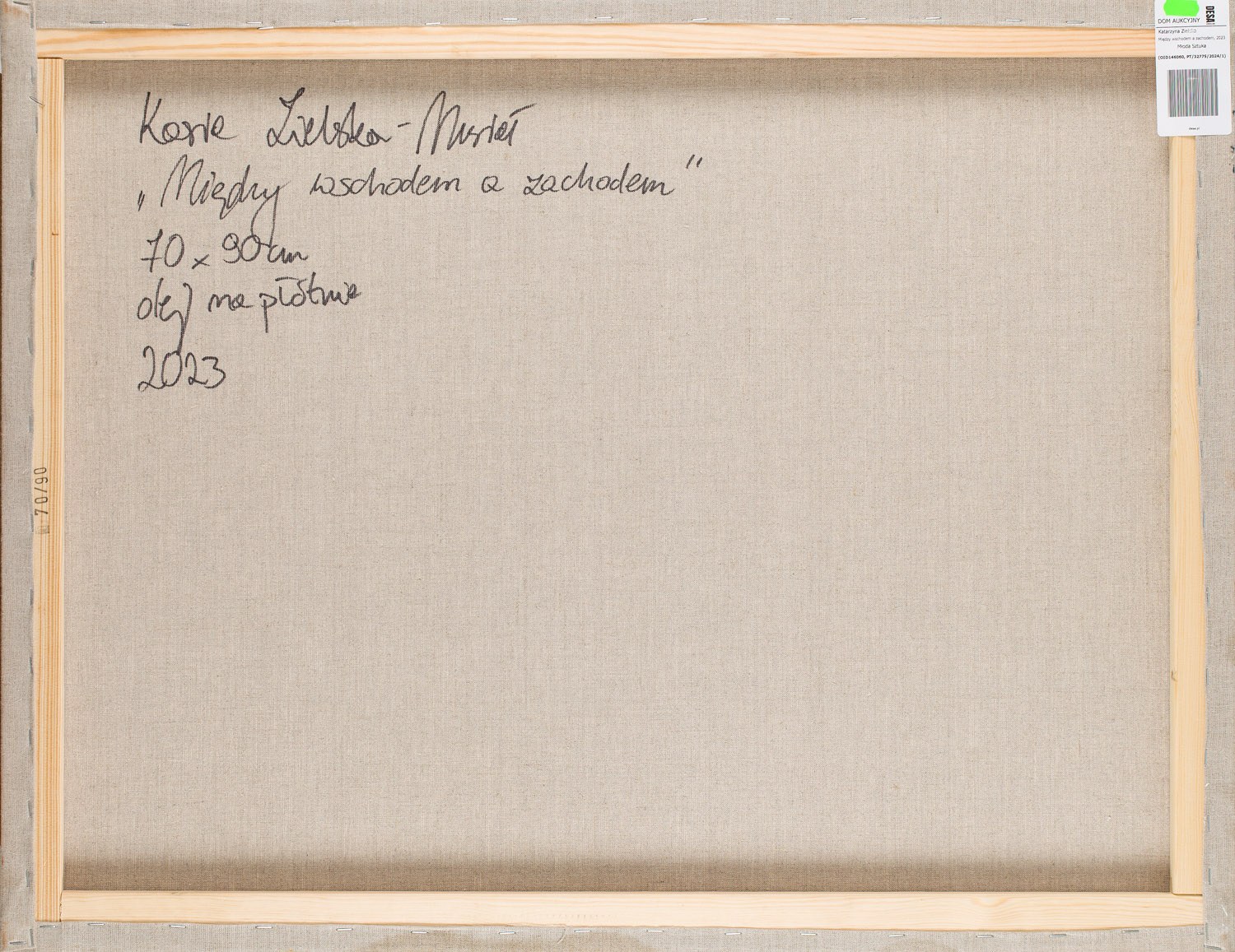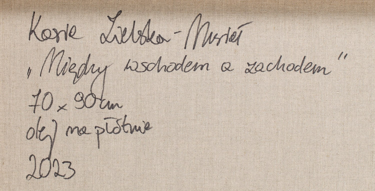 sygnowany, datowany i opisany na odwrociu: 'Kasia Zielska-Musiał | "Między wschodem a zachodem" | 70 x 90 cm | olej na płótnie | 2023'