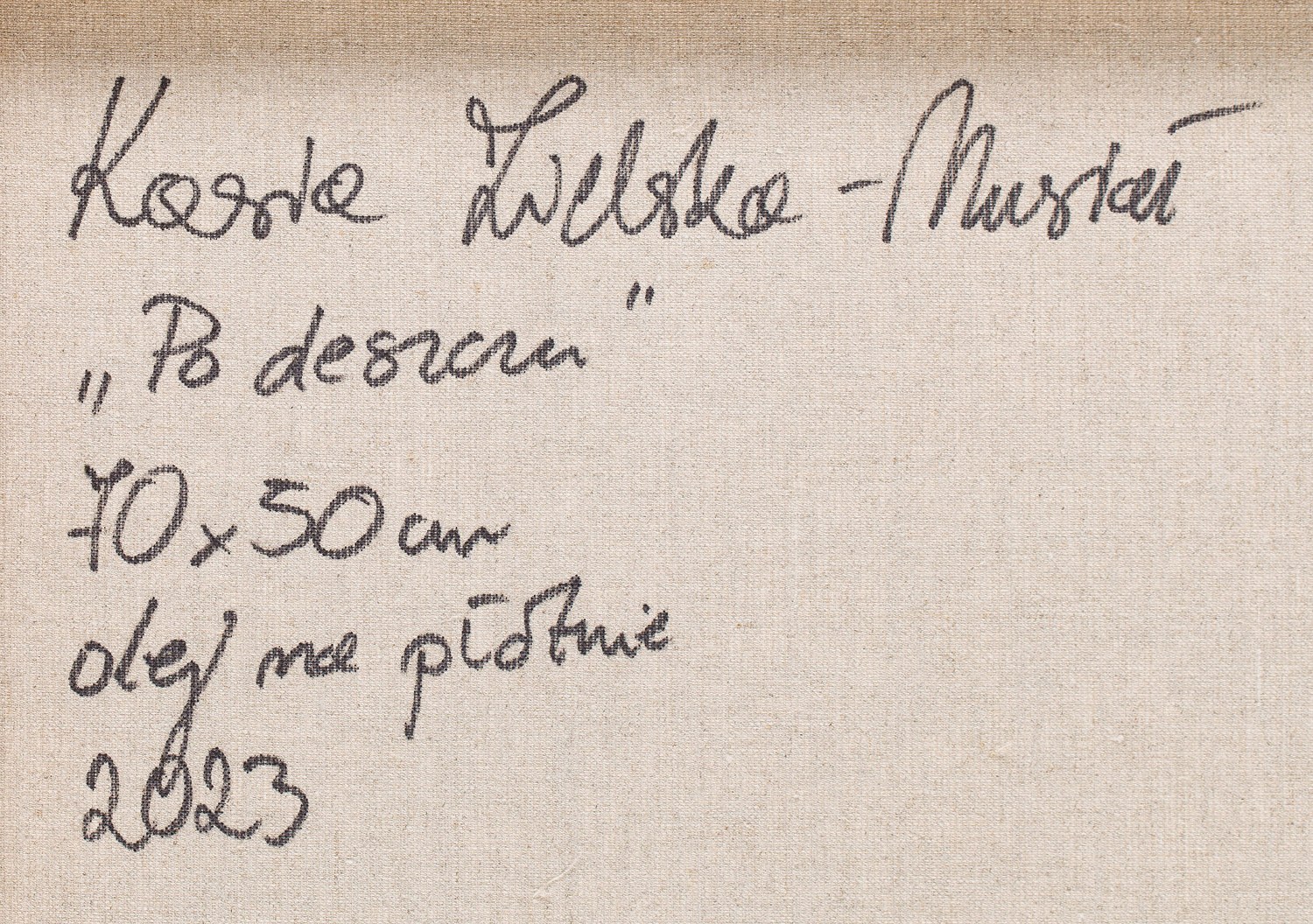 sygnowany, datowany i opisany na odwrociu: 'Kasia Zielska-Musiał | "Po deszczu" | 70 x 50 cm | olej na płótnie | 2023'