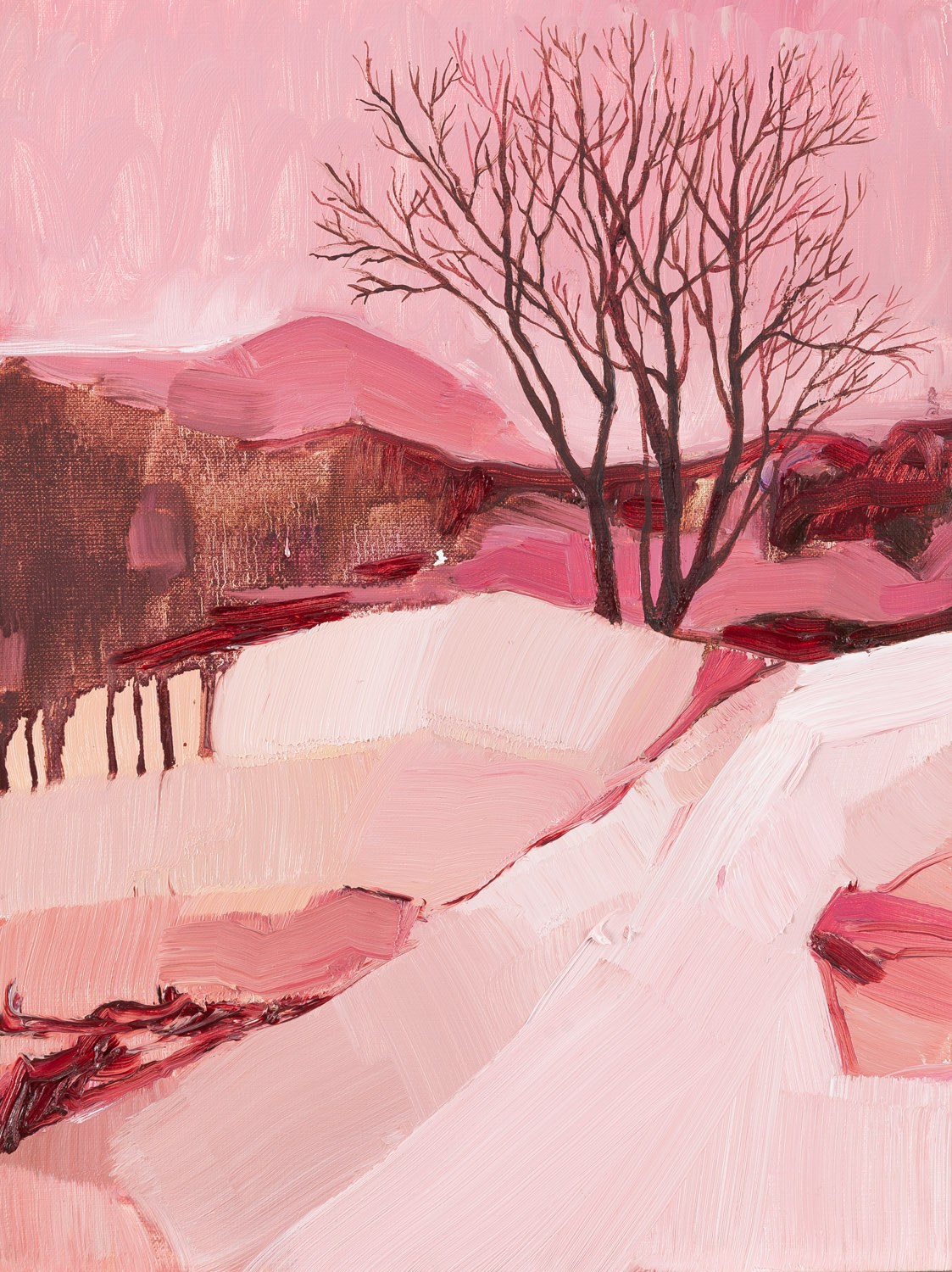 sygnowany, datowany i opisany na odwrociu: 'Kasia Zielska | "Strzebowiska" | Bieszczady | olej na płótnie | 30 x 40 cm " 2023'