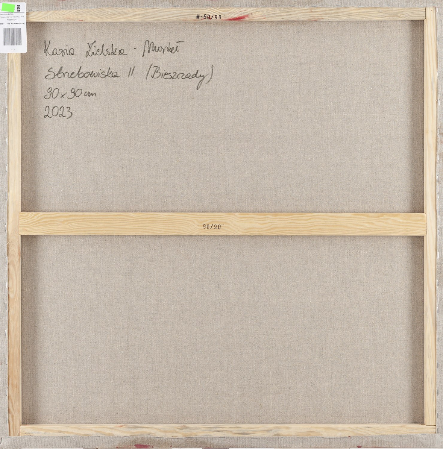 sygnowany, datowany i opisany na odwrociu: 'Kasia Zielska-Musiał | Strzebowiska II (Bieszczady) | 90x90 cm | 2023'