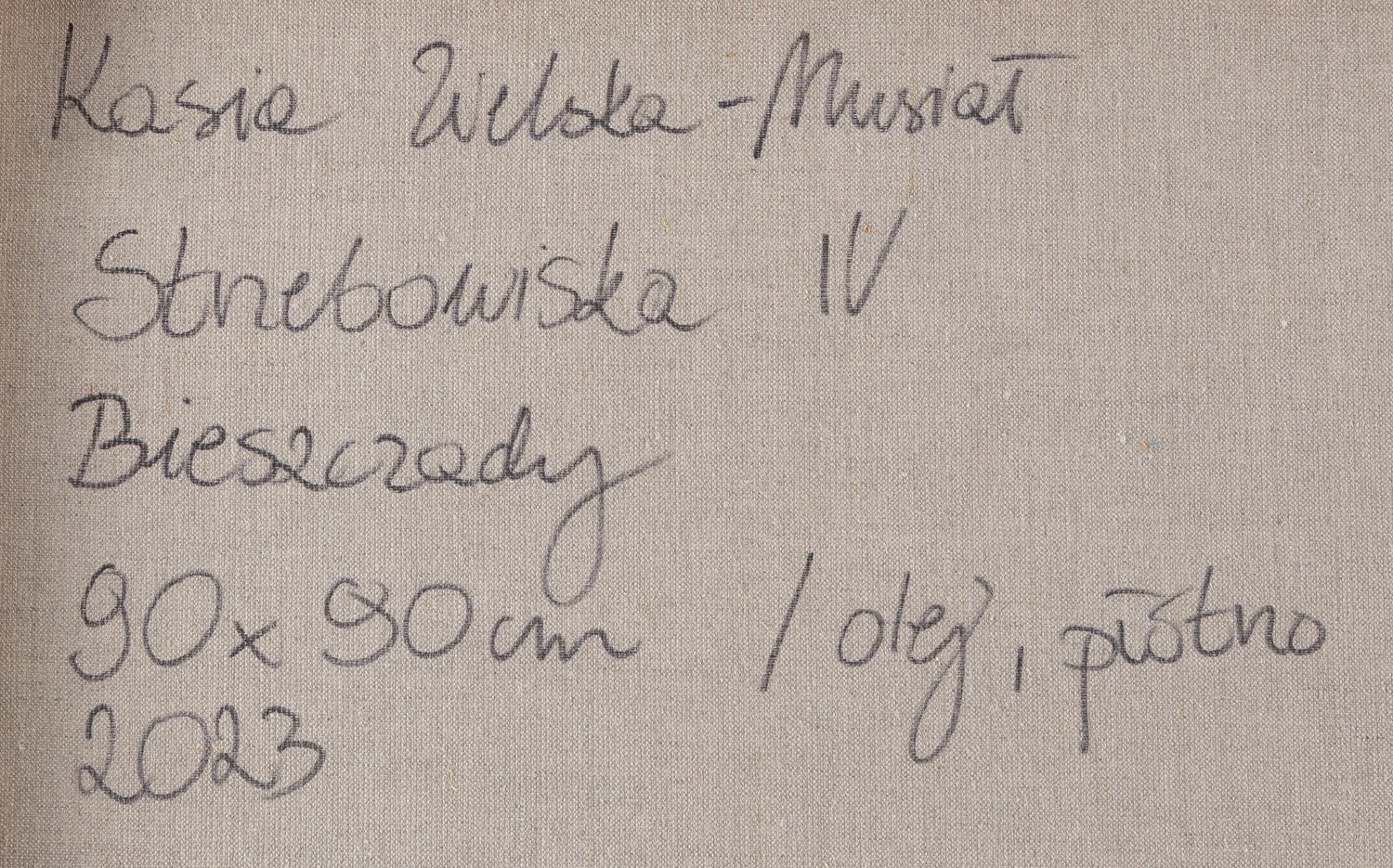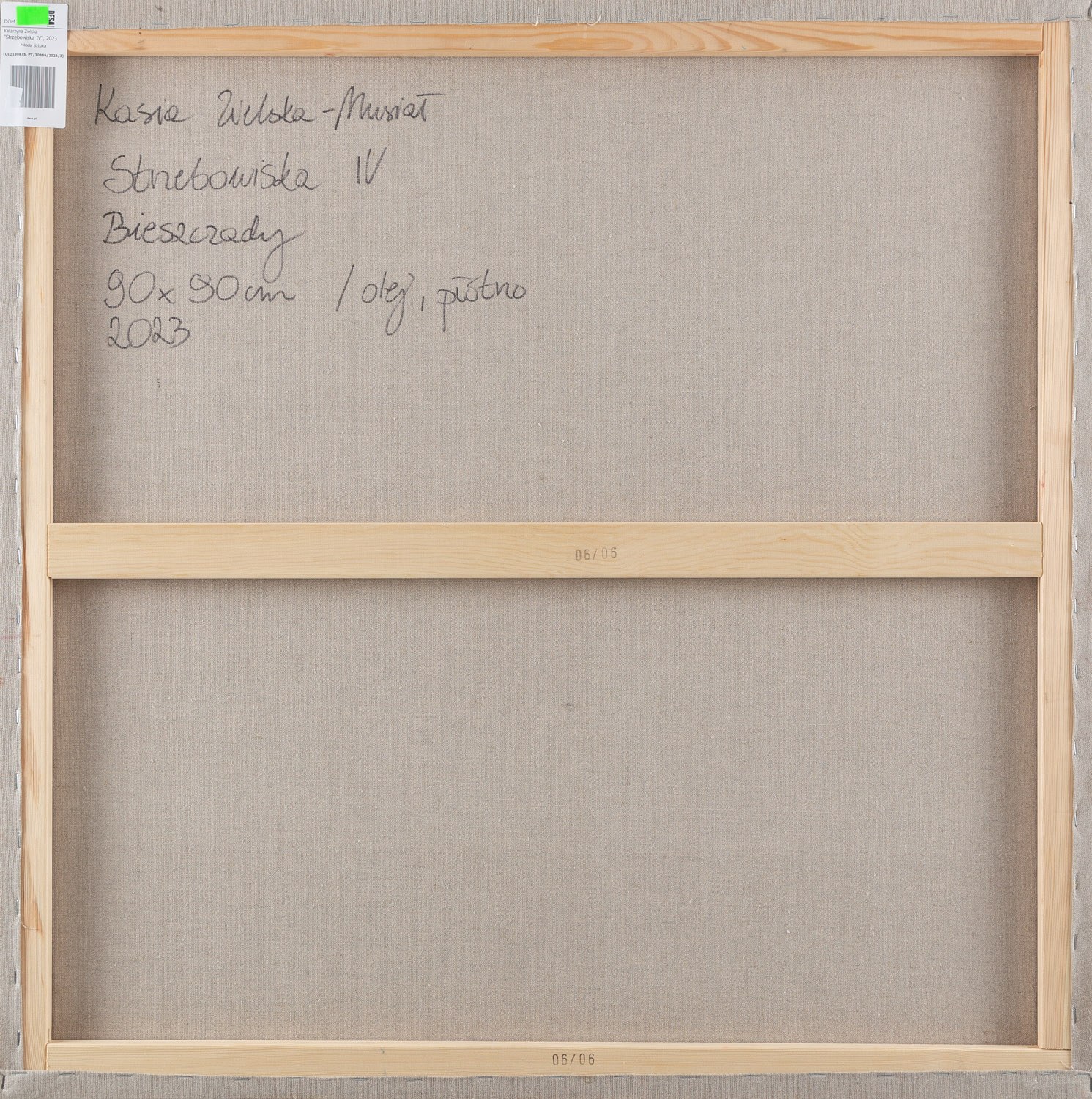 sygnowany, datowany i opisany na odwrociu: 'Kasia Zielska-Musiał | Strzebowiska IV | Bieszczady | 90x90 cm / olej, płótno | 2023'