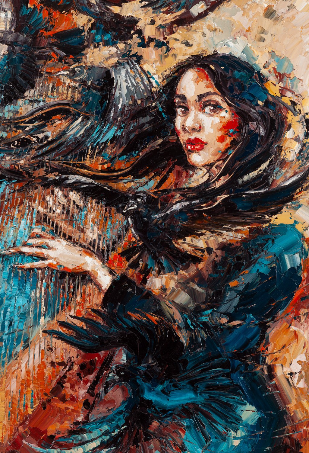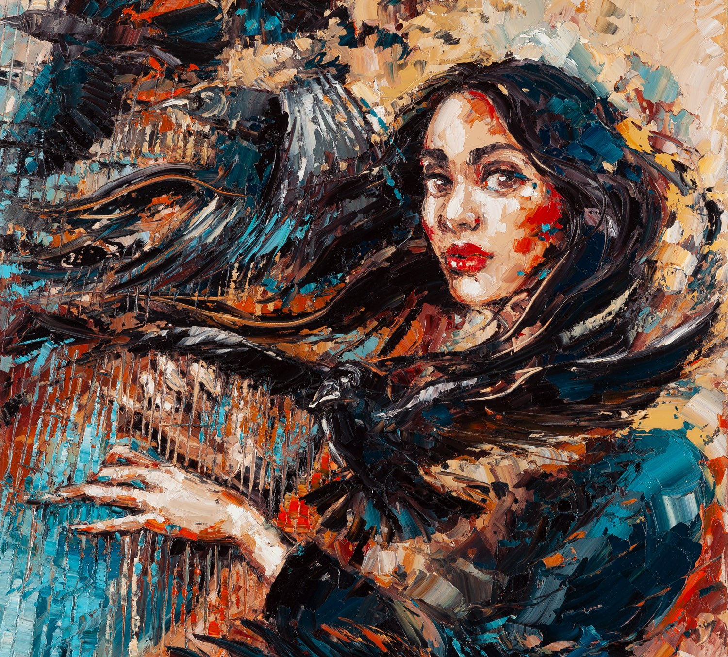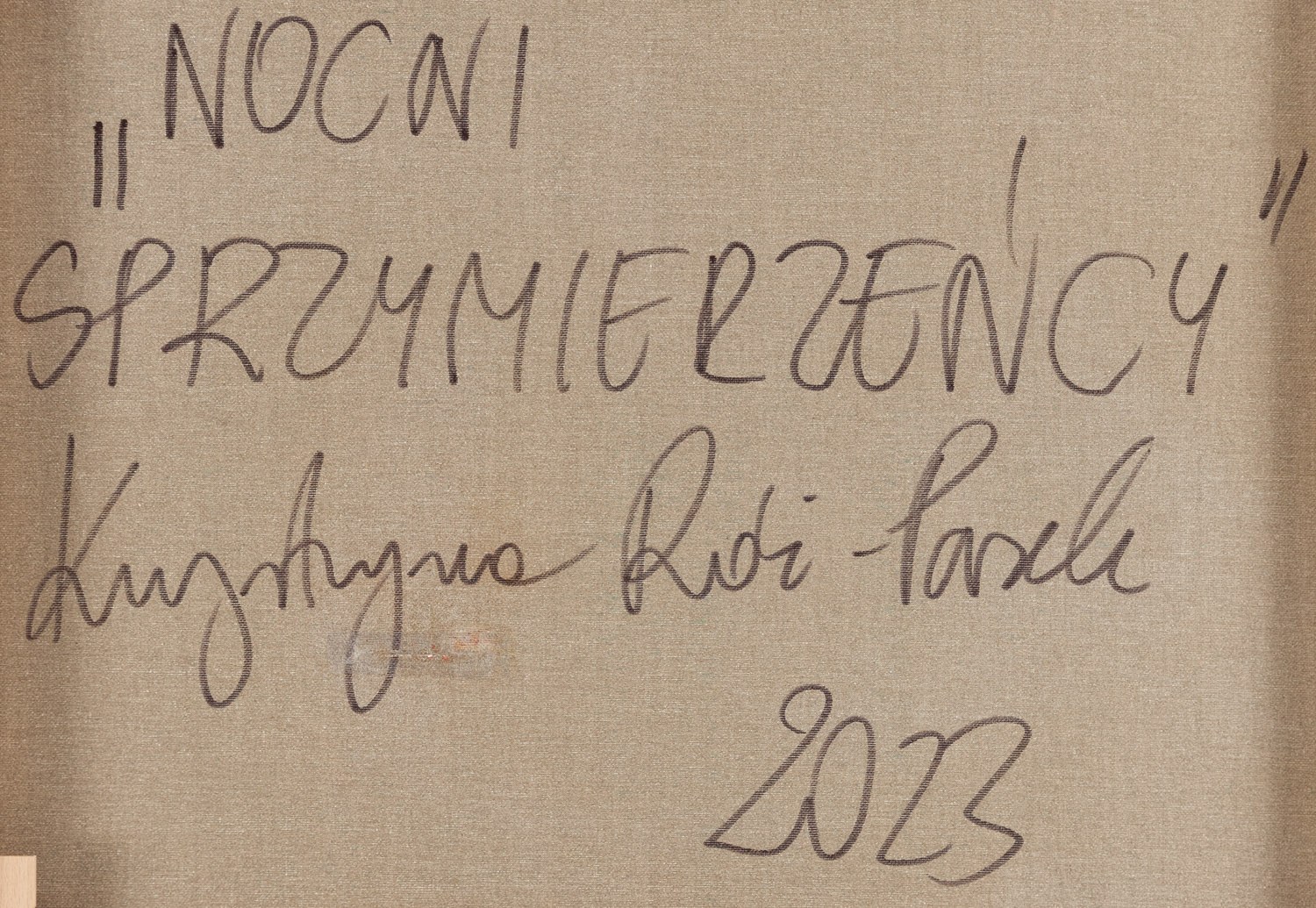 sygnowany, datowany i opisany na odwrociu: '"NOCNY | SPRZYMIERZEŃCY" | Krystyna Róż-Pasek | 2023'