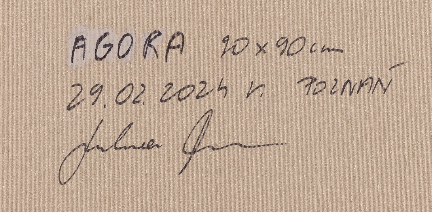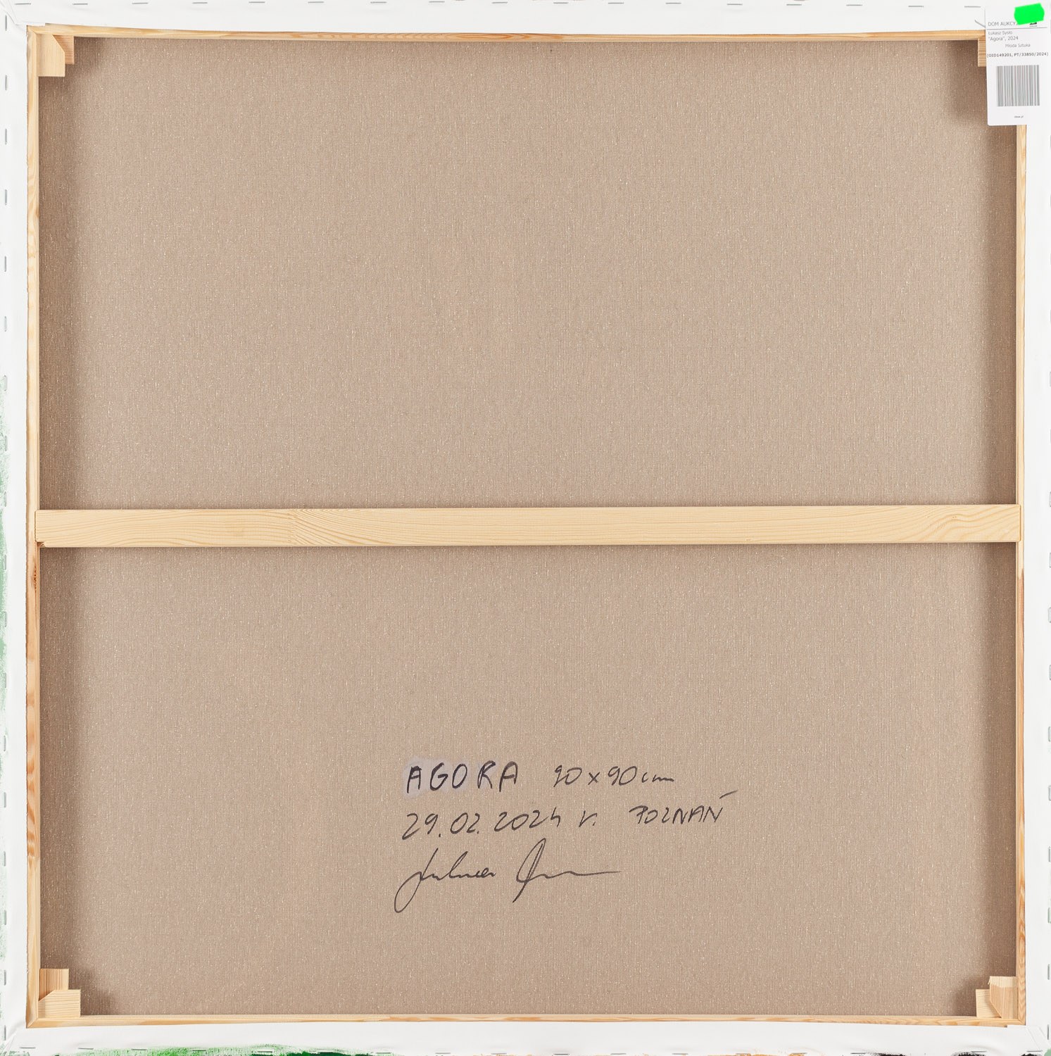 sygnowany, datowany i opisany na odwrociu: 'AGORA 90x90 cm | 29.02.2024 r. POZNAŃ | Łukasz Sysło'