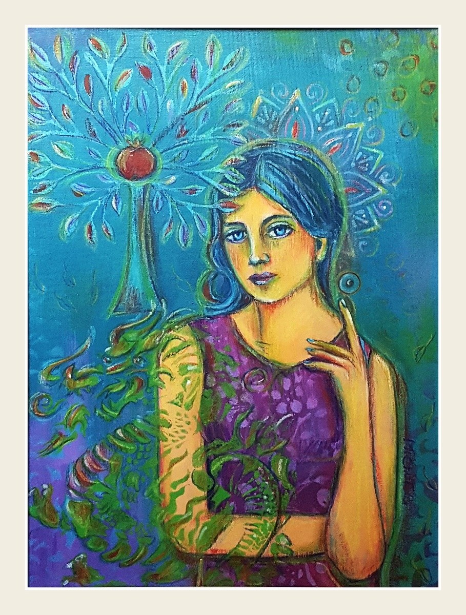 technika mieszana (akryl, kredka akwarelowa), tablica malarska, 40 x 30 cm, w oprawie: 42,5 x 32,5 cm, sygn. p.d.: M.Chołda