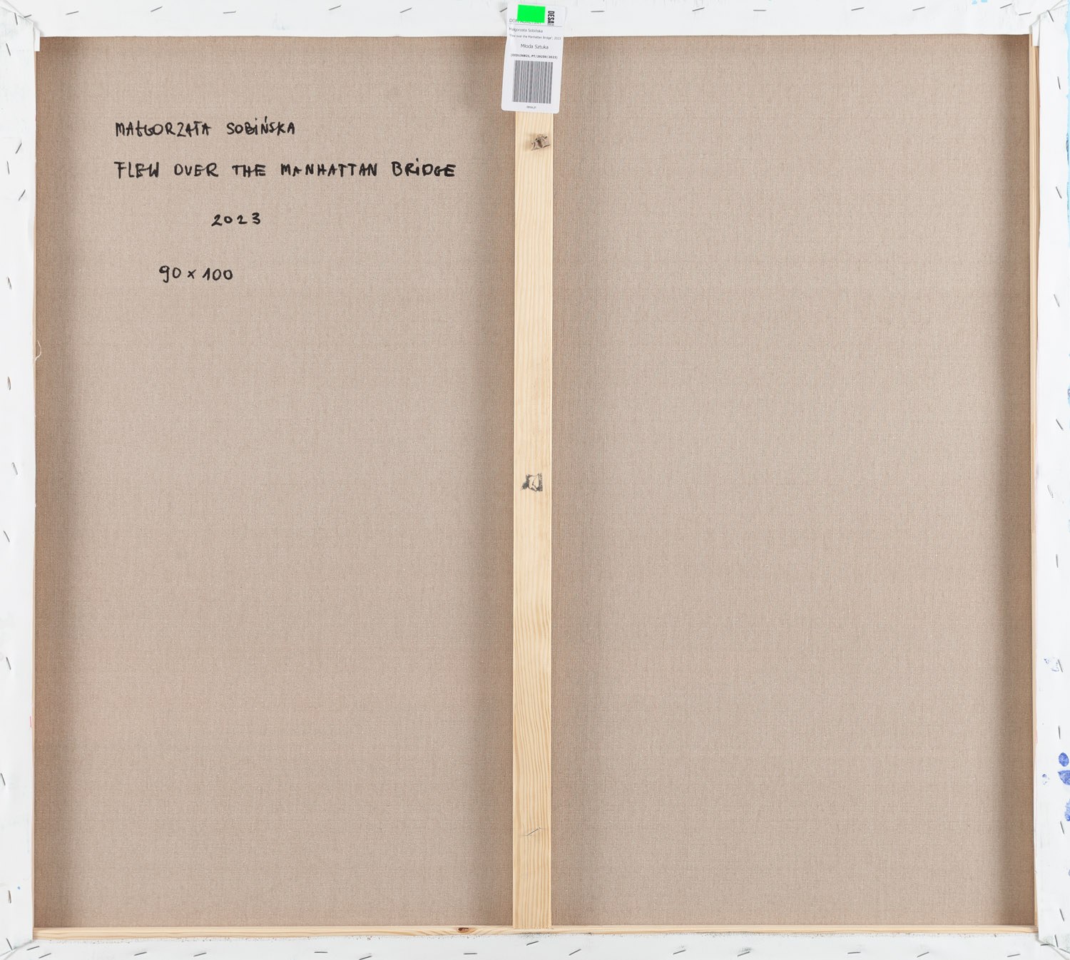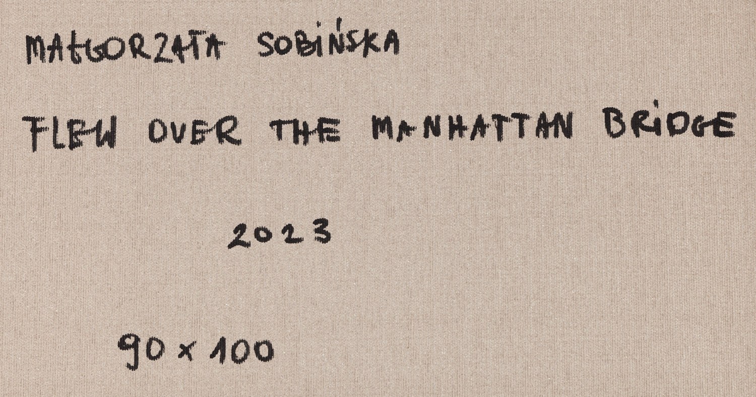 sygnowany, datowany i opisany na odwrociu: 'MAŁGORZATA SOBIŃSKA | FLEW OVER THE MANHATTAN BRIDGE" | 2023 | 90 x 100'