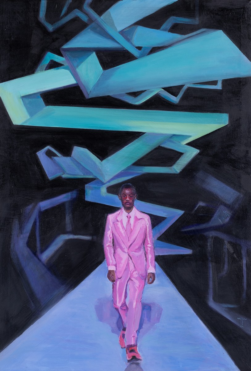 olej, płótno, 110x75 cm, sygn. p.d. monogramem, opisany na odwrocie: 75x110 | Marek Domaniecki 2023 | 'Catwalk'