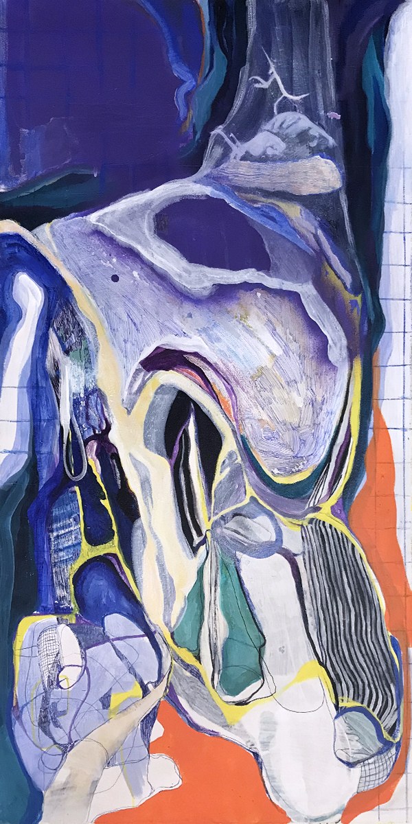 technika mieszana, płótno, 120x50 cm, opisany na odwrocie: O! BORAWSKA KIEDY ROZUM ŚPI BUDZĄ SIĘ MODLISZKI 2019-2024