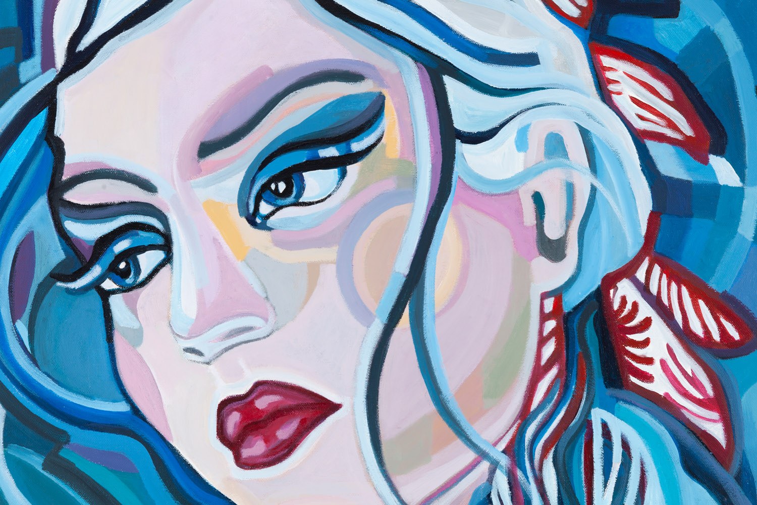 datowany i opisany na odwrociu: 'Kobieta w błękicie 2022'