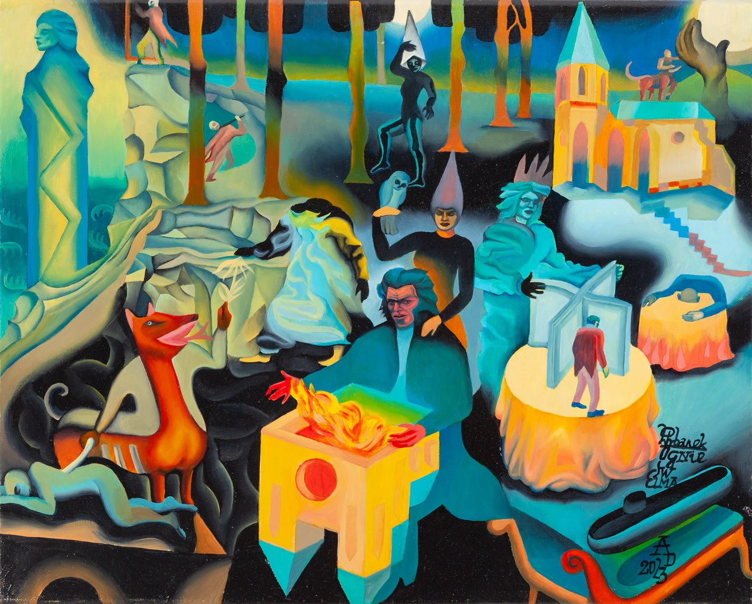 sygnowany, datowany i opisany p.d.: 'PUrbanek | Ognie | Św | Elma | AD | 2023'