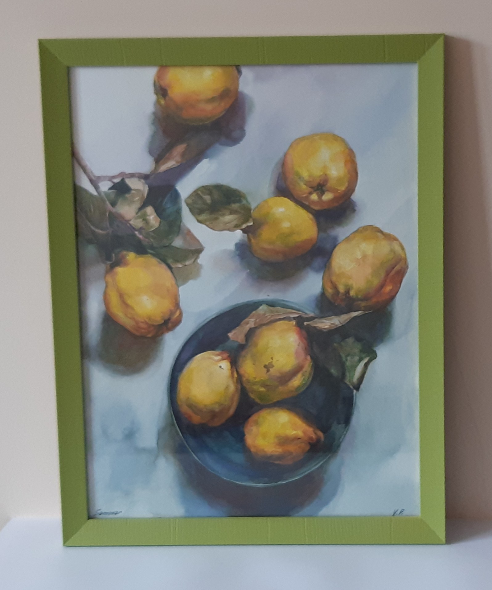 Realizm - owoce jabłoni , praca wykonana ręcznie przez autorkę w jednym egzemplarzu. Sygnowana w dolnym rogu. Biorąc udział w naszych aukcjach wspierasz Ukraińskich artystów w tym ciężkim czasie jakim jest wojna z Rosją .