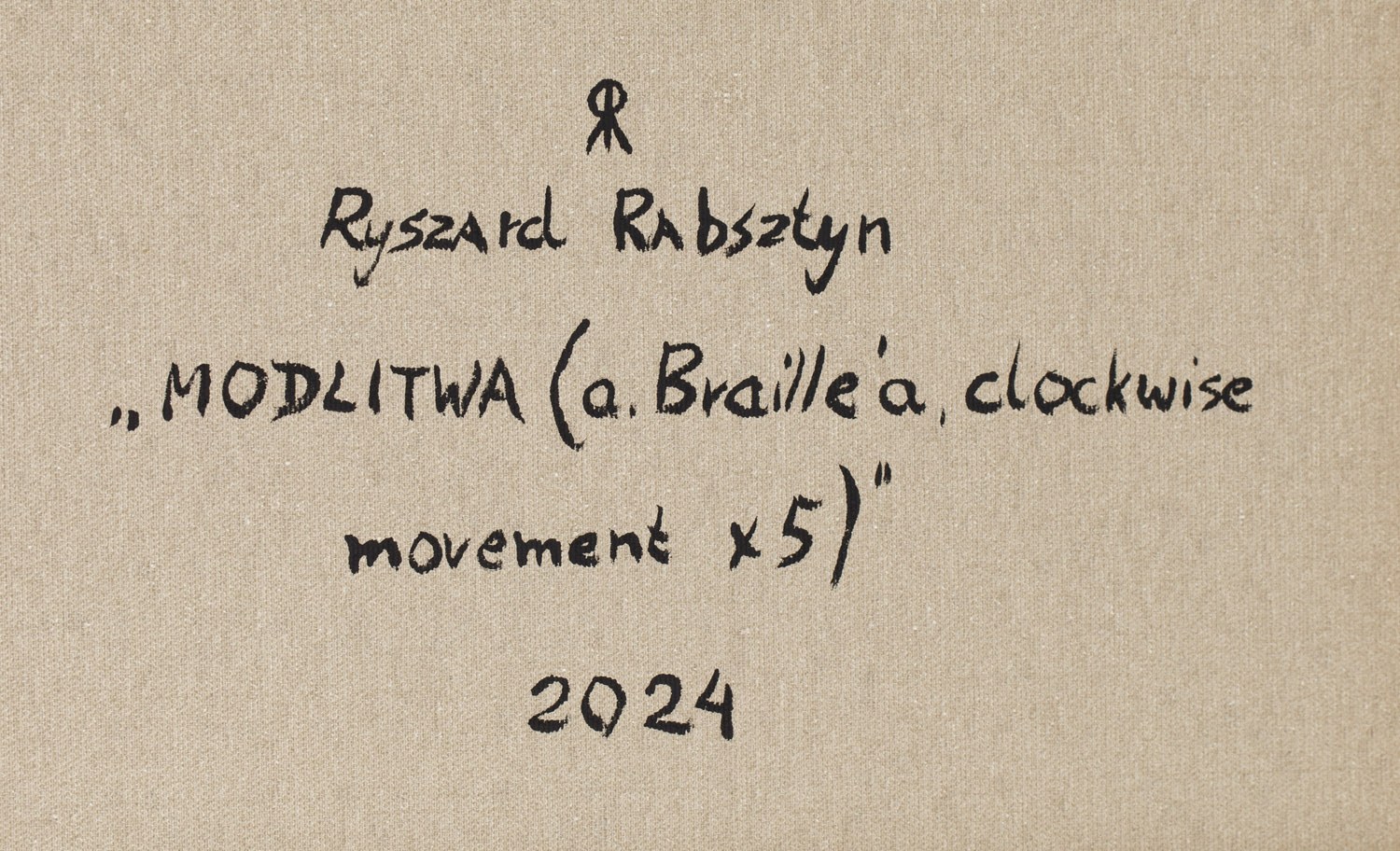sygnowany, datowany i opisany na odwrociu: '[monogram artysty] | Ryszard Rabsztyn | "MODLITWA(a. Braille'a, clockwise | movement x5)" | 2024'