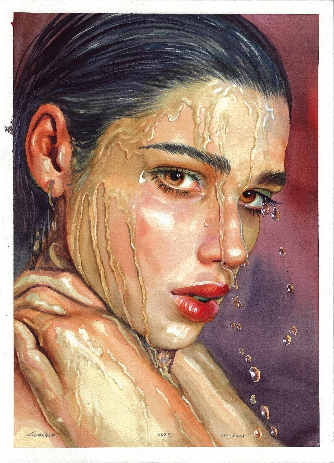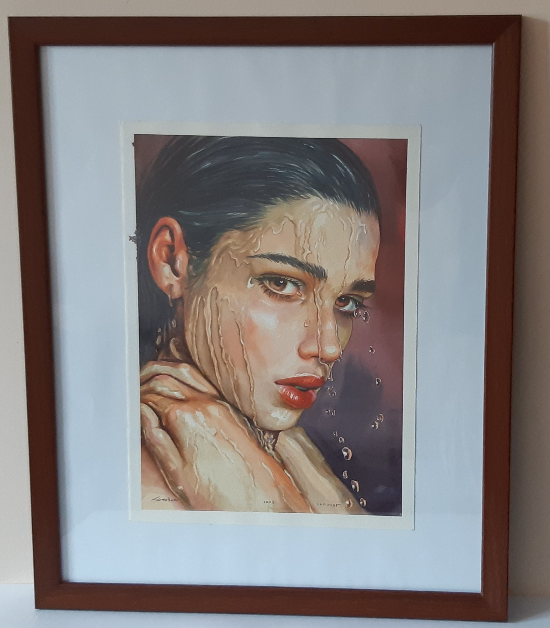 Portret kobiety : realizm , praca wykonana ręcznie przez autorkę w jednym egzemplarzu. Sygnowana w dolnym rogu , oprawiona .