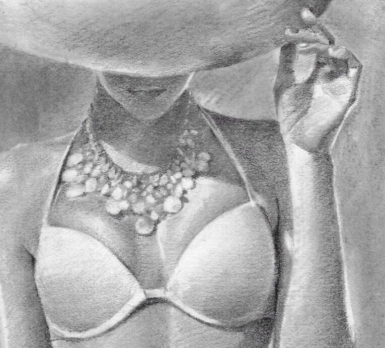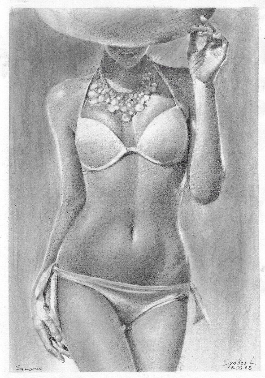 Realizm - sylwetka kobiety , praca wykonana ręcznie przez autorkę w jednym egzemplarzu. Sygnowana w dolnym rogu , oprawiona .