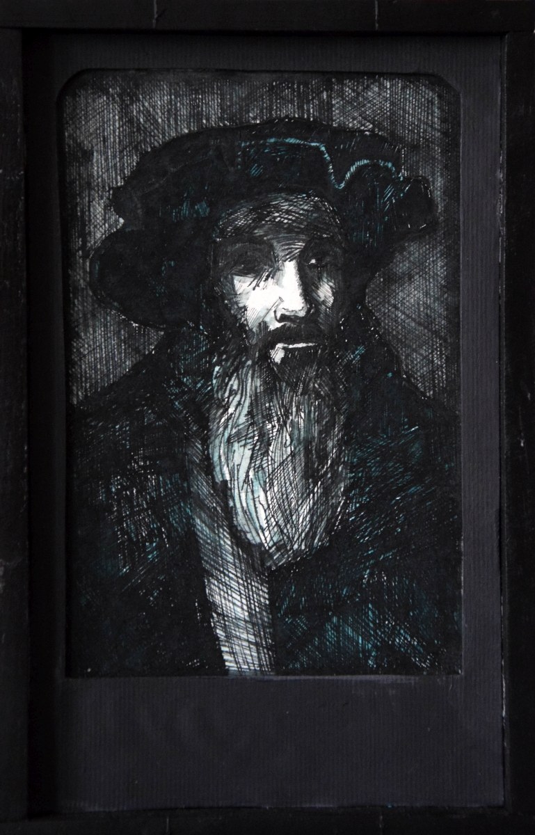technika mieszana (tusz, piórko), karton, 23 x 14 cm (arkusz), w oprawie: 25 x 16 cm, sygn. p. d.: T.Masionek