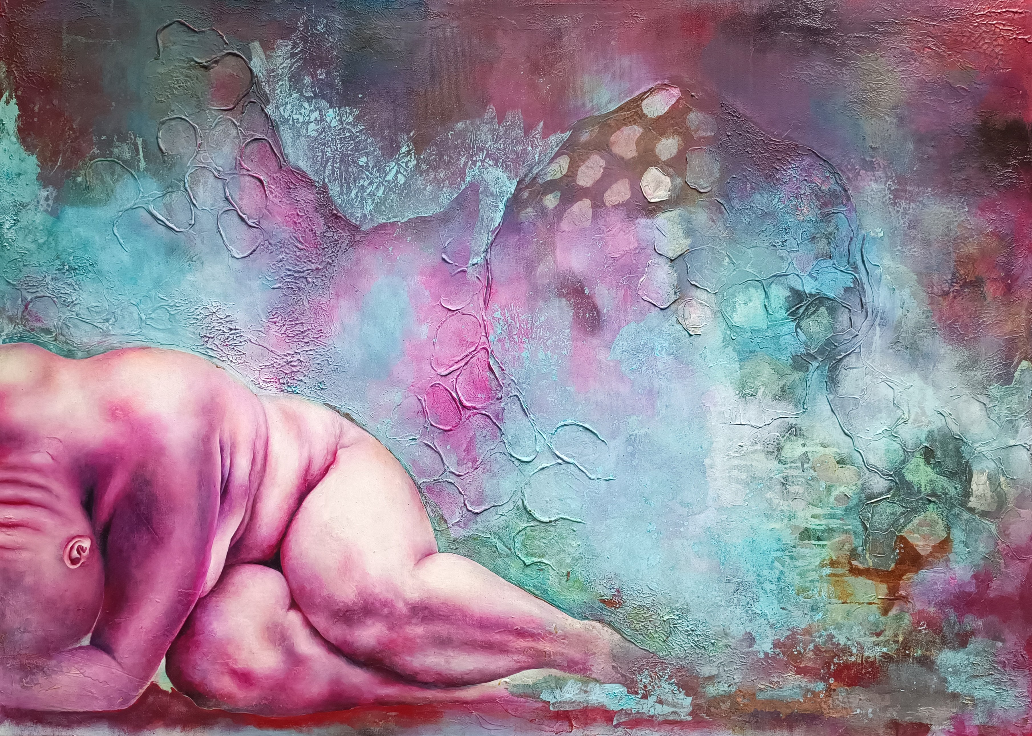 Technika: technika mieszana na płótnie (olej, akryl, technika własna, rdza)