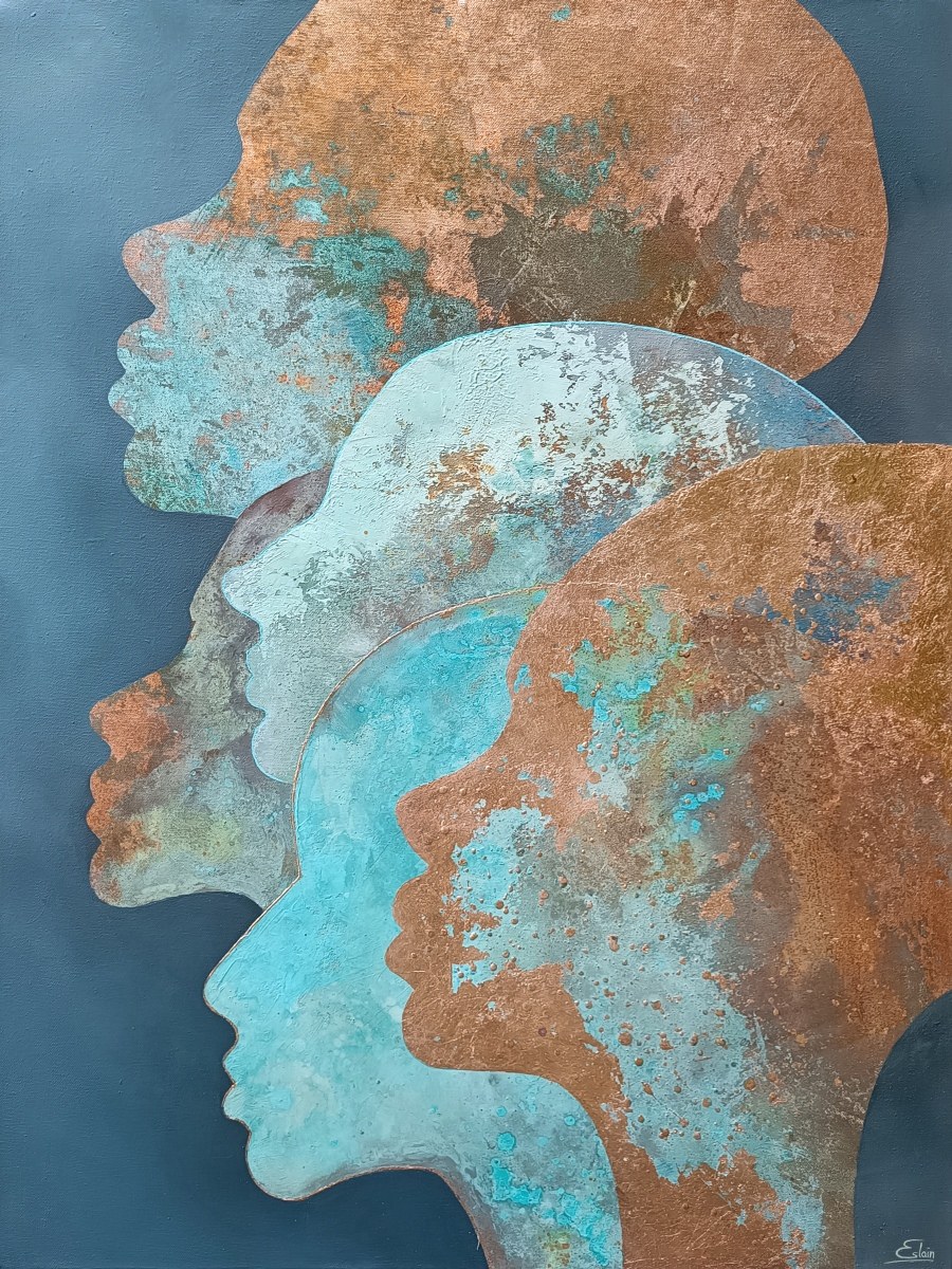 technika mieszana (akryl, szlagmetal, rdza, technika własna), płótno, 80 x 60 cm, sygn. p.d.: Eslain