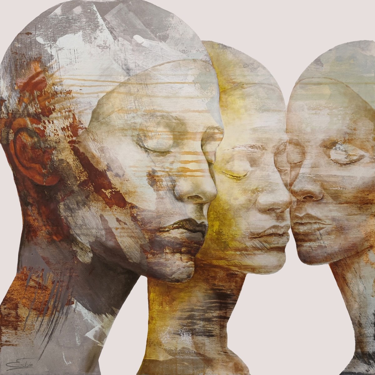 technika mieszana (akryl, olej, rdza), płótno, 80 x 80 cm, sygn. l.d.: Eslain