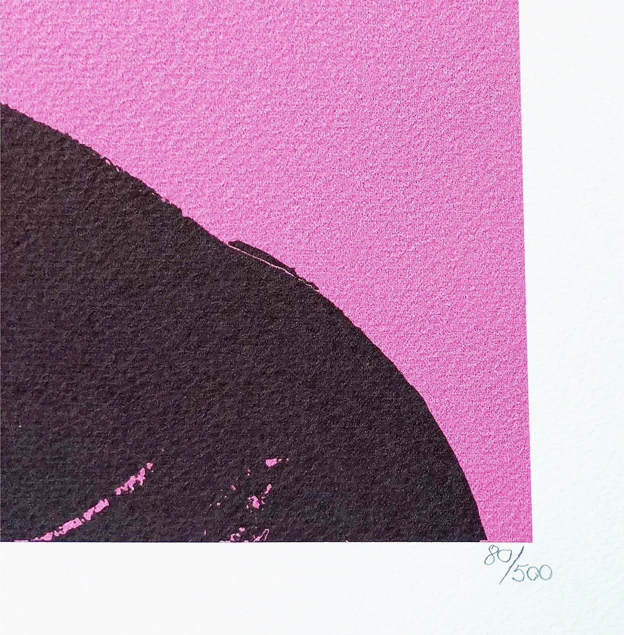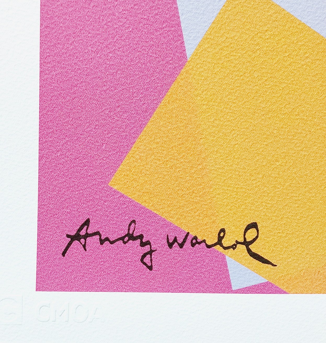Na odwrocie: niebieska pieczęć z wizerunkiem Warhola i podpisem.