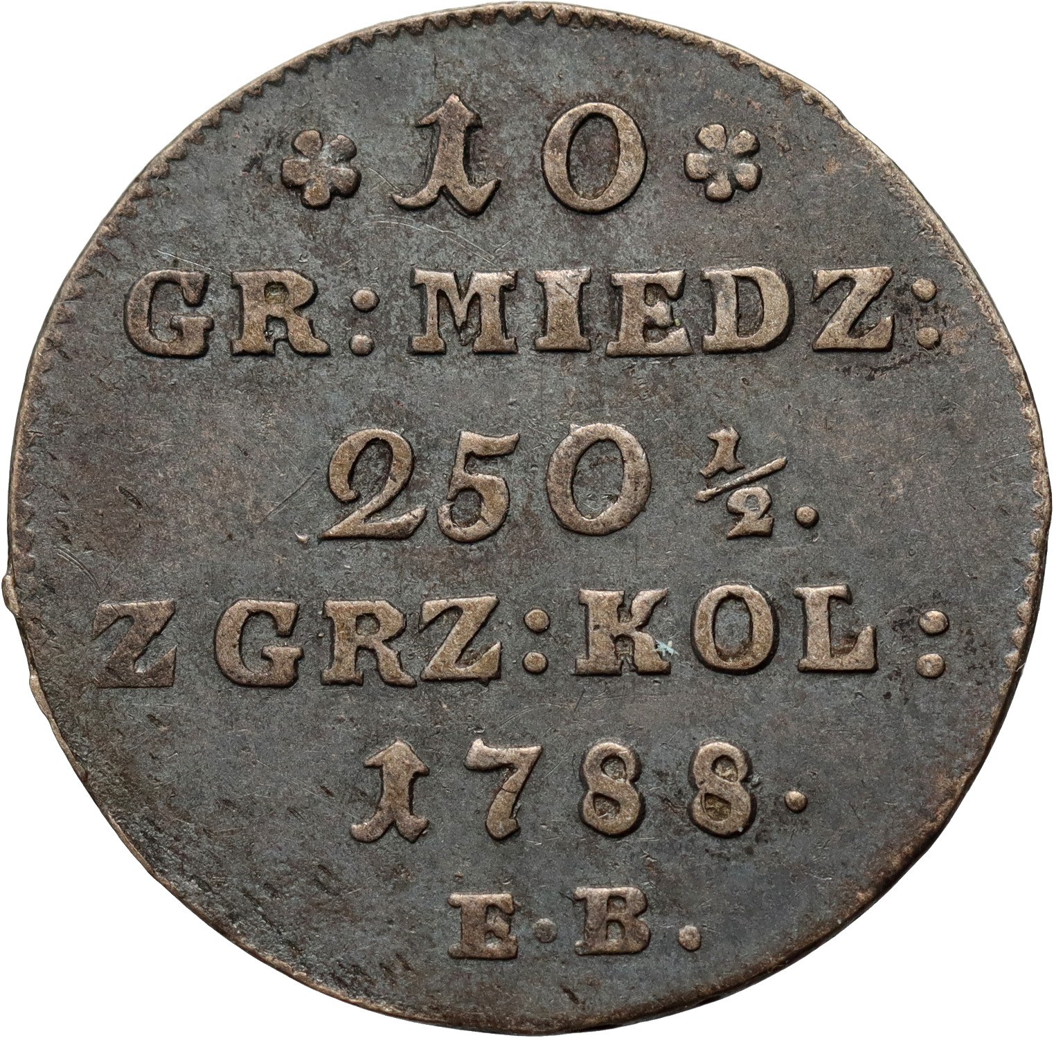 Stanisław August Poniatowski, 10 groszy miedziane 1788 EB, Warszawa