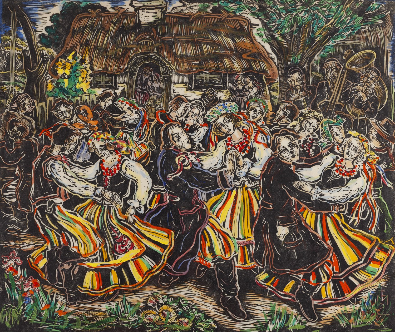 sygnowany, datowany i opisany u dołu ołówkiem: 'Wesele Łowickie Mrożewski Stefan 1961'