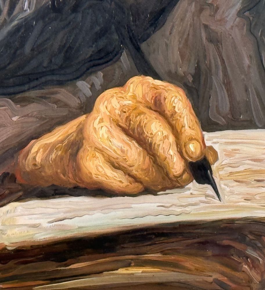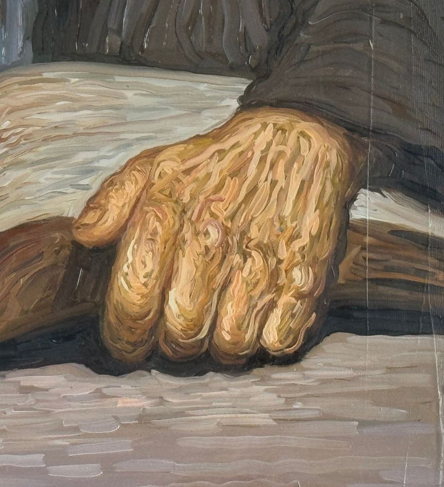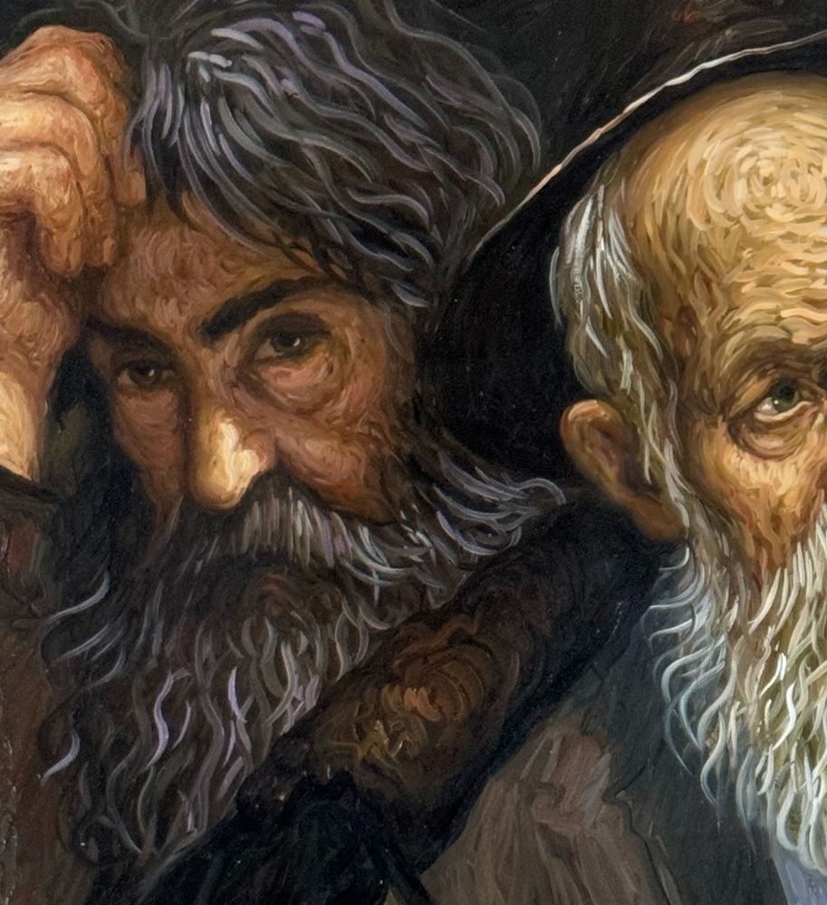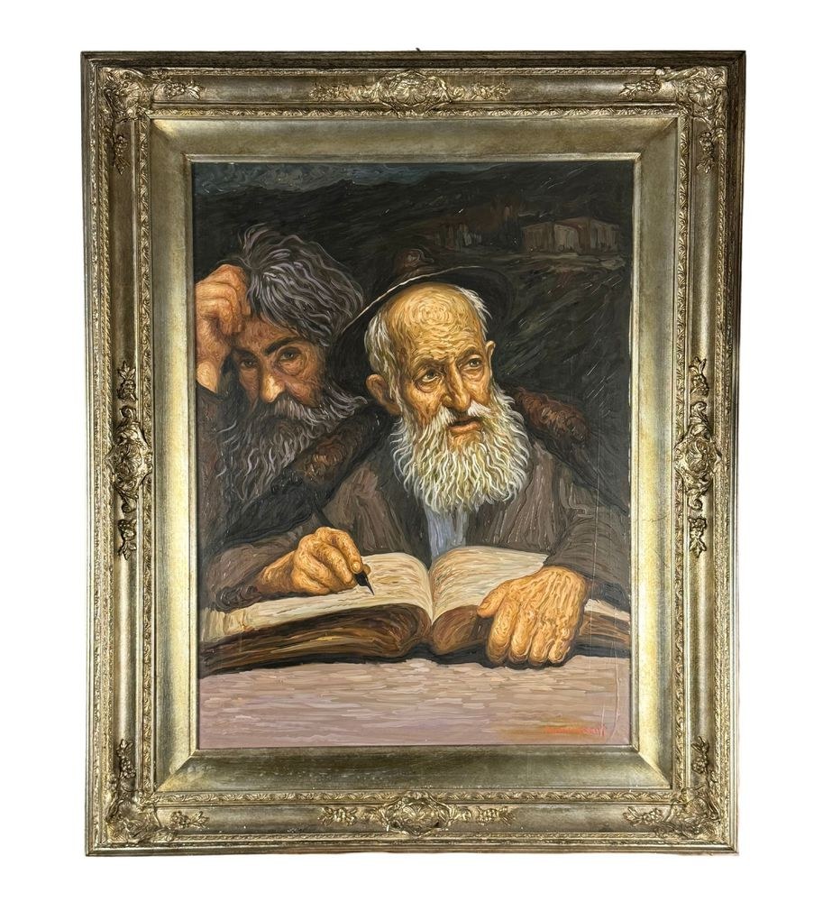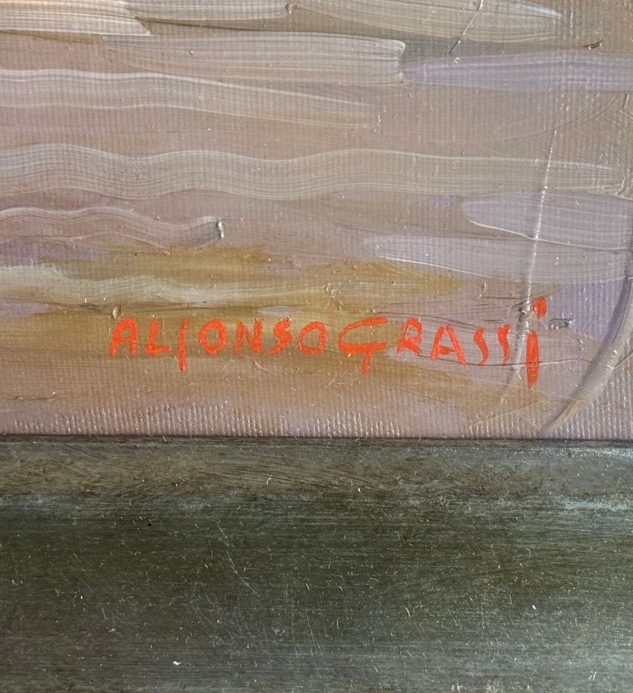 Oil painting on canvas, 20th century, Italian school, depicting two figures. Dimensions including the frame: 90x110 cm. Inner frame dimensions: 60x80 cm. Signed in the lower right corner by Alfonso Grassi. The artwork is in good condition.
