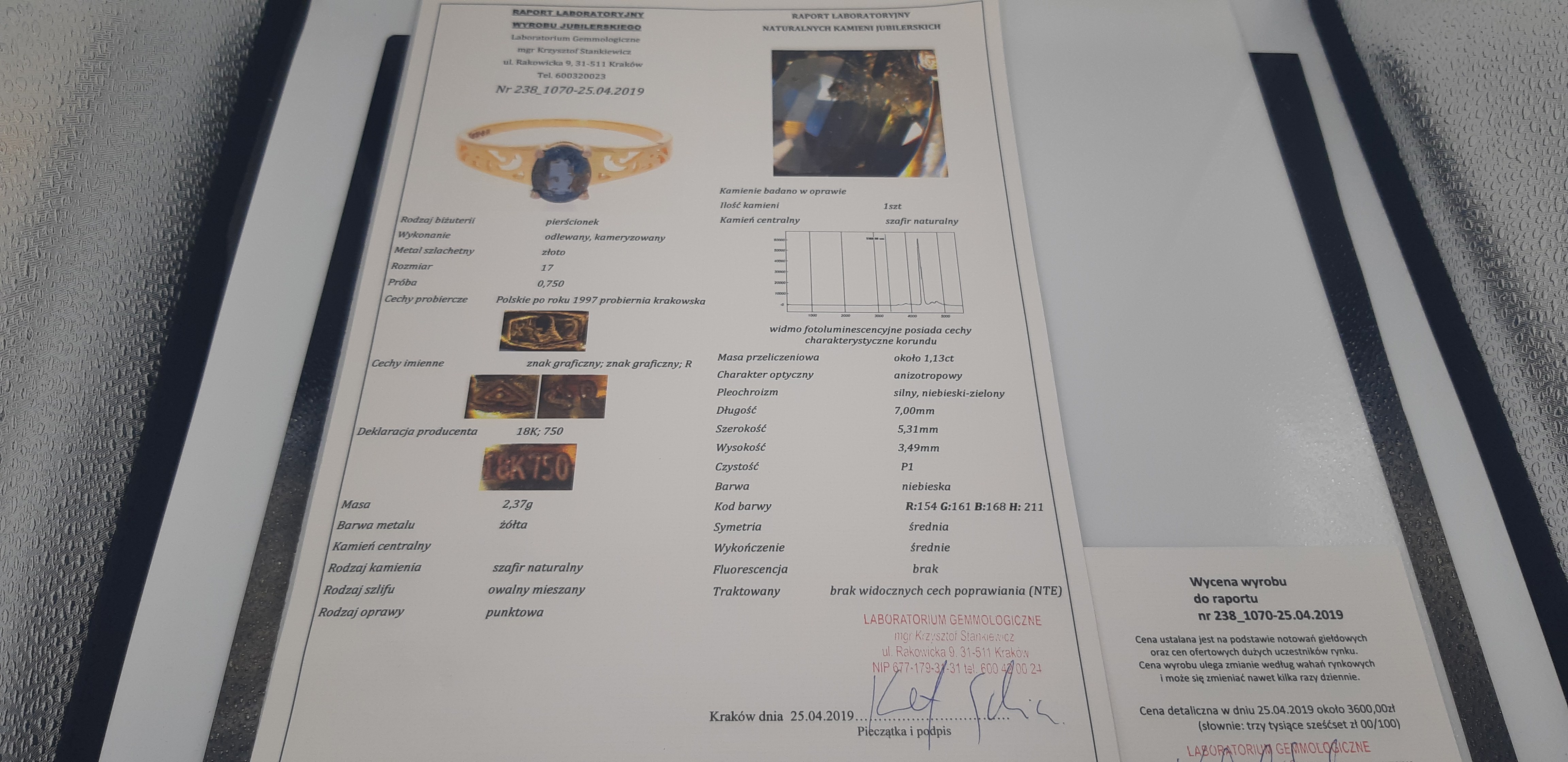 Stan: Bardzo Dobry . Wycena w 2019r. : 3600 zł. Wyrób z raportem laboratoryjnym.