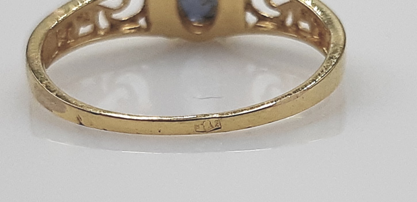 Metal: Au.750 Waga pierścionka : 2,37 gr. Rozmiar : 17