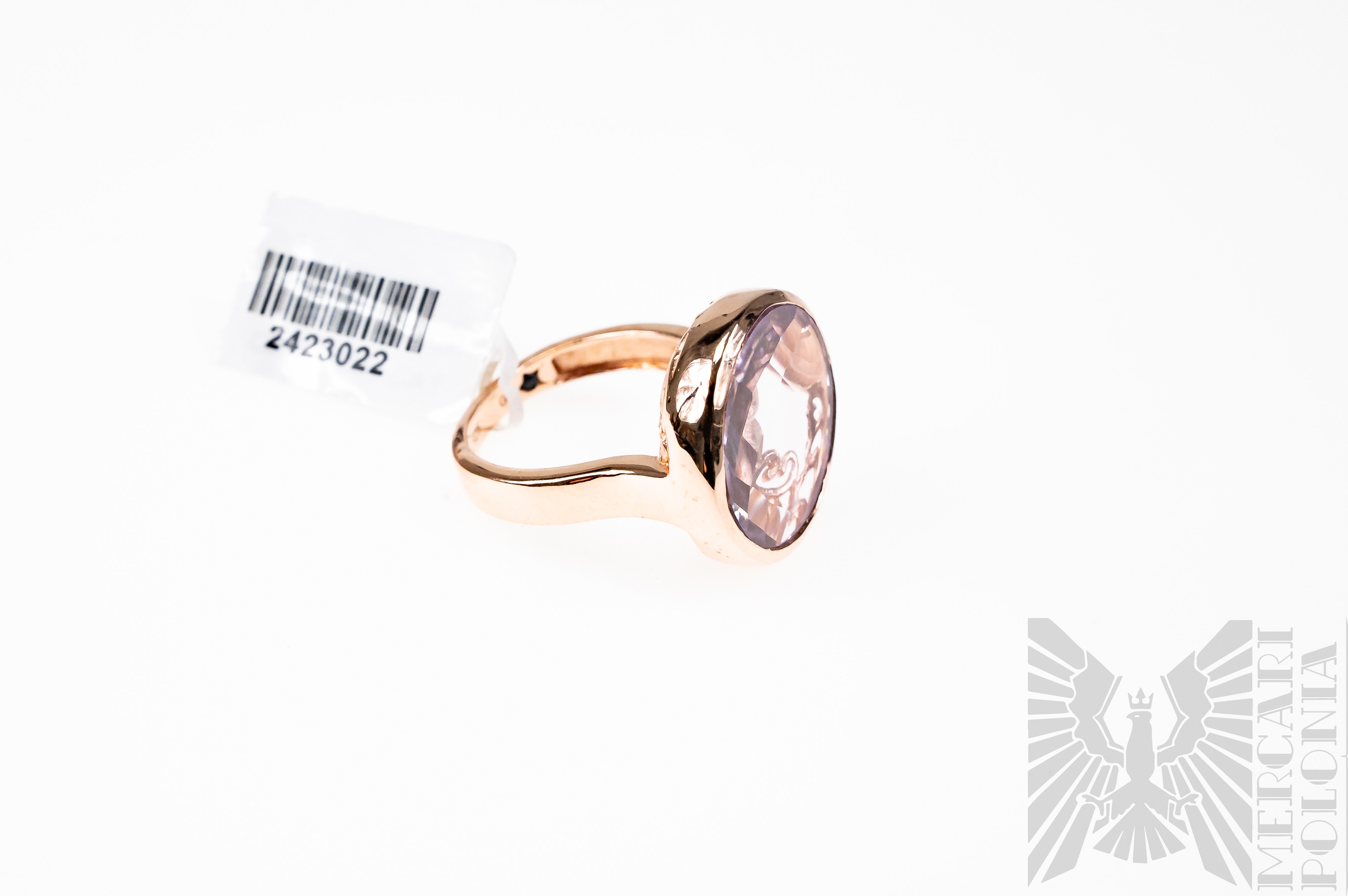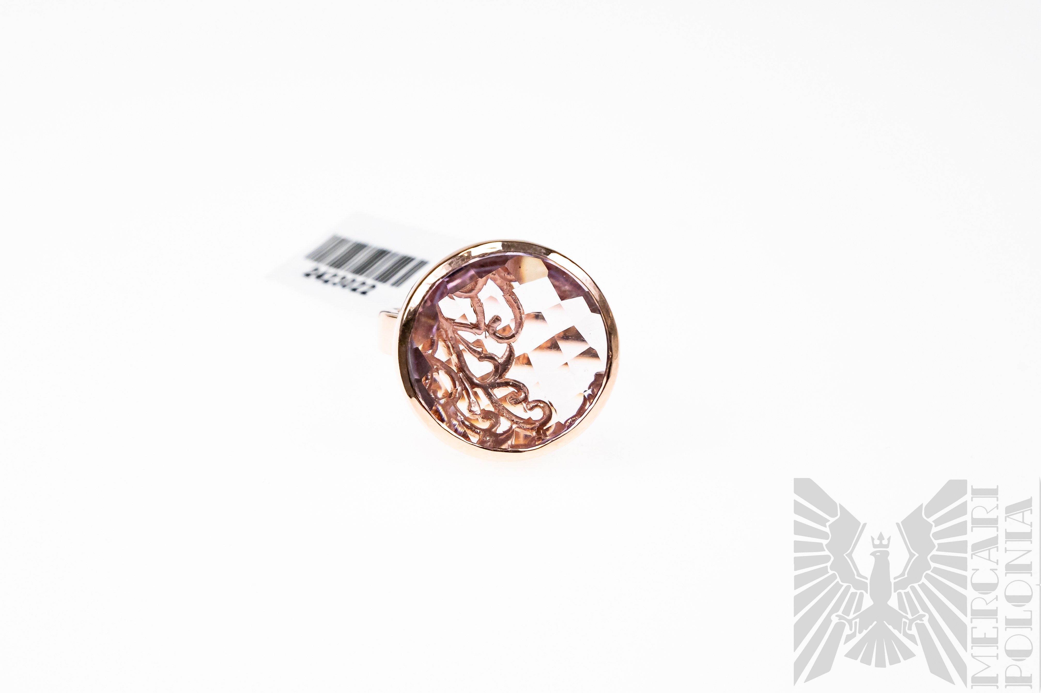 Pierścionek Pozłacany z Naturalnym Kwarcem Różowym i Szafirem, średnica korony 20 mm, masa wyrobu 7.72 gram, rozmiar 17, Srebro 925 Pozłacane Różowym Złotem