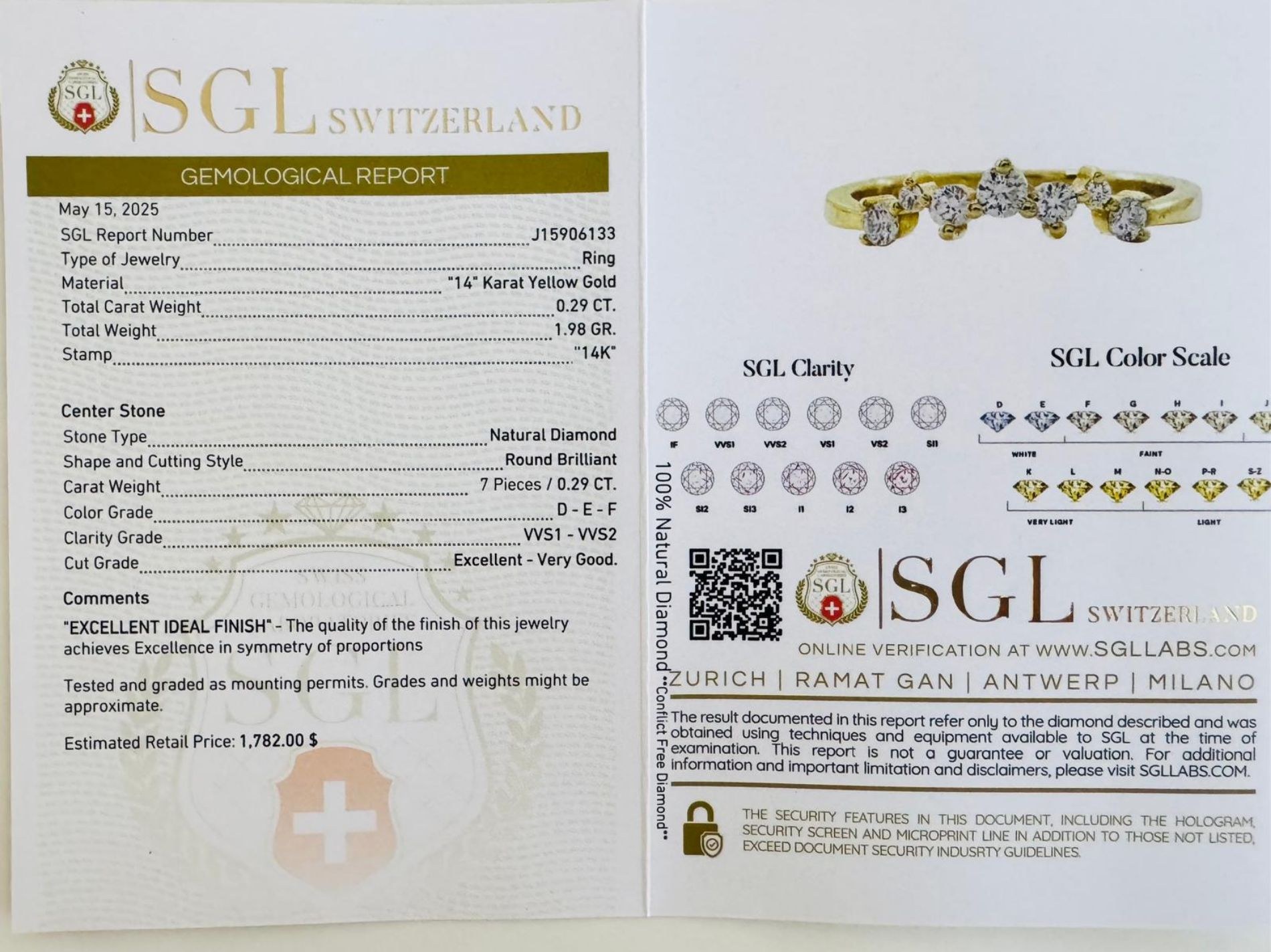 14K YELLOW GOLD RING 1.99 GRAMS WITH 0.29 CARATS ER NATURAL DIAMONDS COLOR F CLARITY VS - SIZE 54 – A3600 - - AUCTION COMMISSION 25%