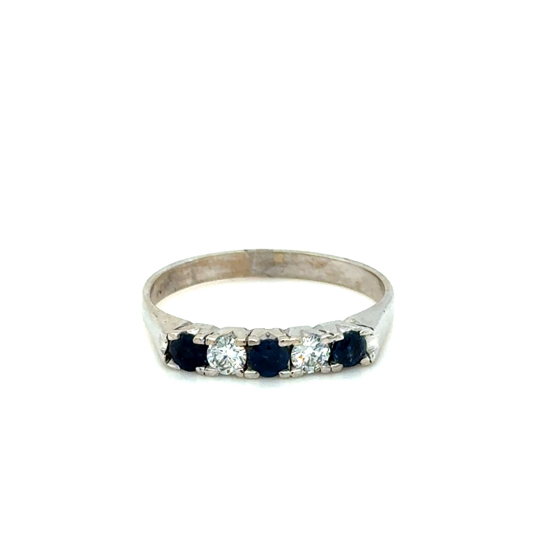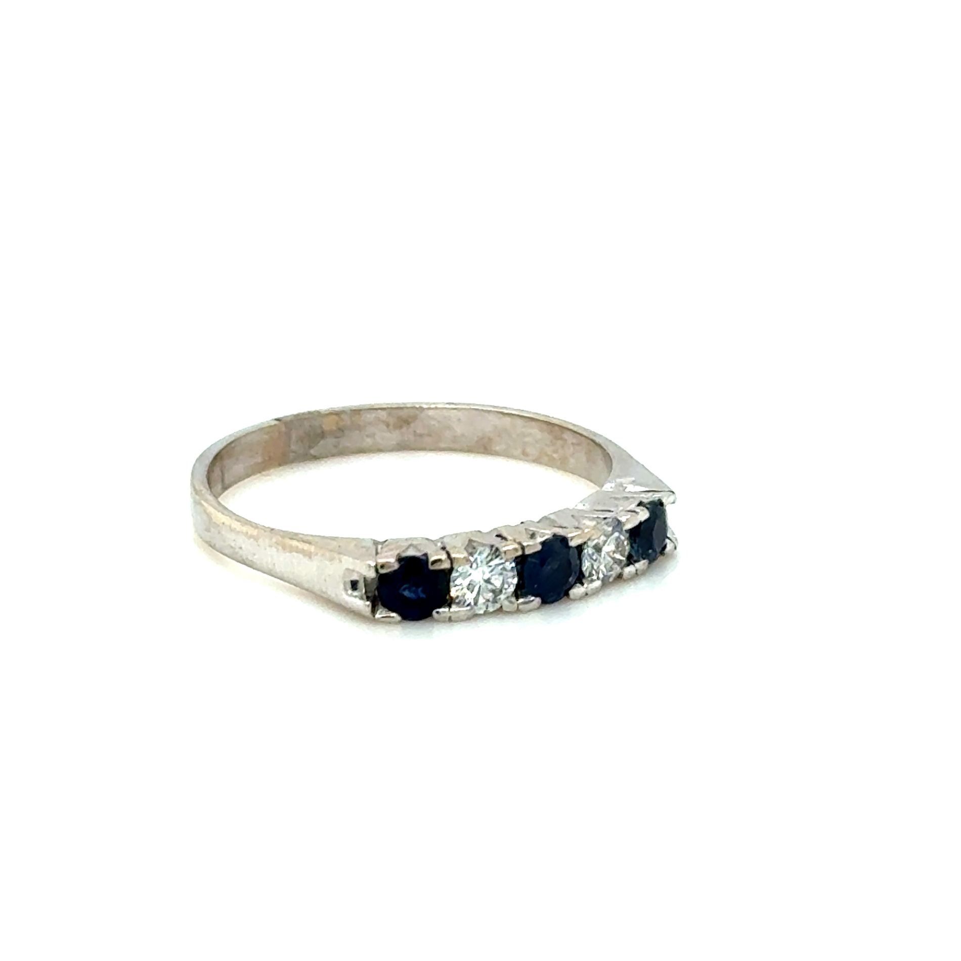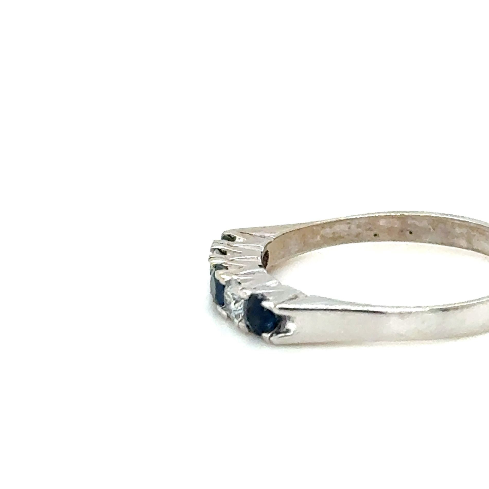 14K WHITE GOLD RING 2.18G NATURAL DIAMONDS 0.18 CARATS F COLOR VSE CLARITY NATURAL SAPPHIRES 0.27 CARATS - SIZE 57 - A3703 - AUCTION COMMISSION 25%