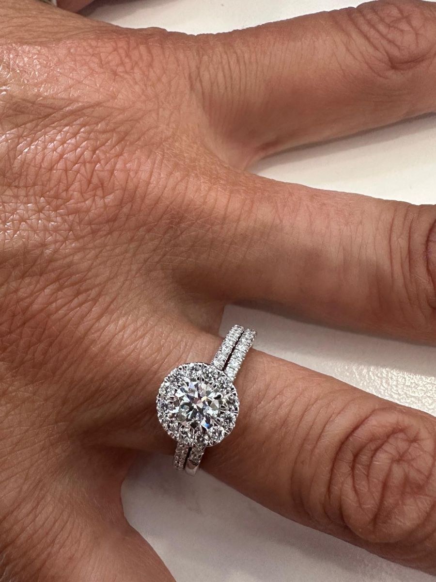 THIS 14K WHITE GOLD RING FEATURES HIGH-QUALITY LAB-GROWN DIAMONDS, WEIGHING 4.65 GRAMS AND TOTALING 1.00 CARATS. THE DIAMONDS, E/F COLOR E VS CLARITY, ADD A TOUCH OF ELEGANCE AND BRILLIANCE, MAKING THIS PIECE PERFECT FOR ANY SPECIAL OCCASION. 425 LG - AUCTION COMMISSION 25%