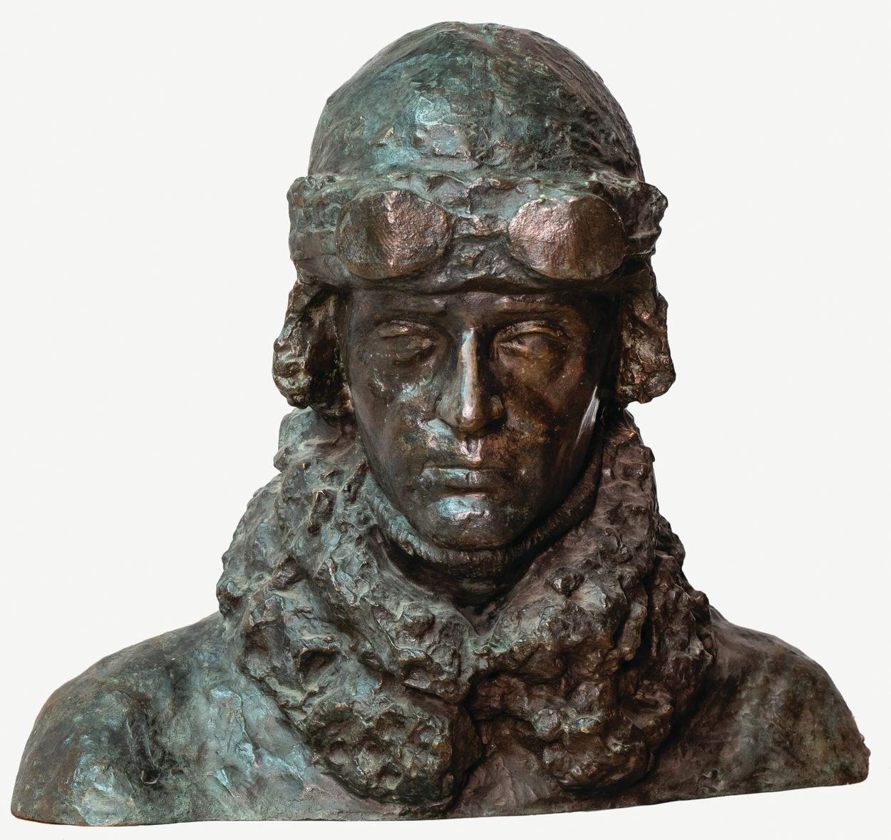 Sportretowanym jest Jerzy Proniewicz, lotnik, brat żony rzeźbiarza.