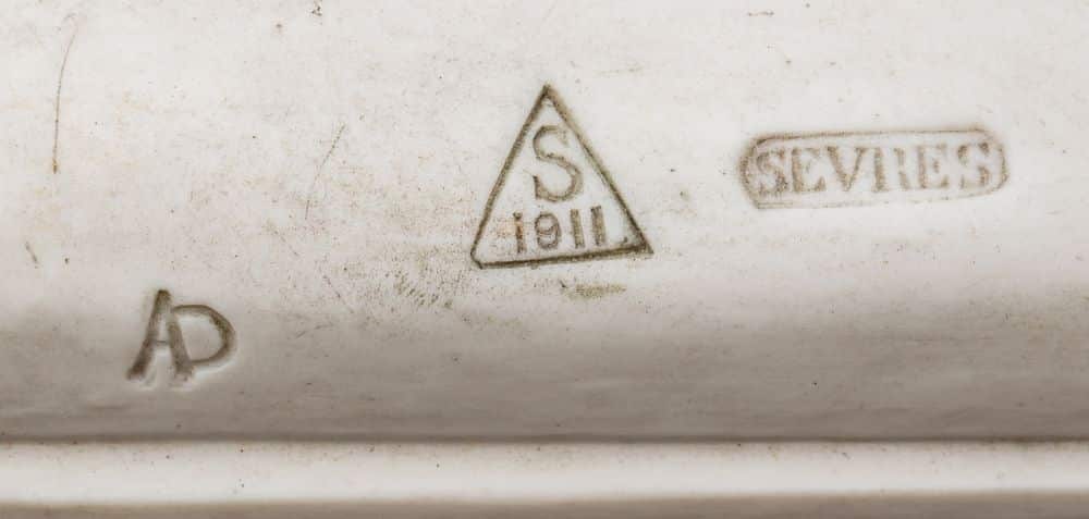 Sygnowana wyciskiem i czarną farbą: w trójkącie S nad datą 1911; w owalu SEVRES; ryta AB