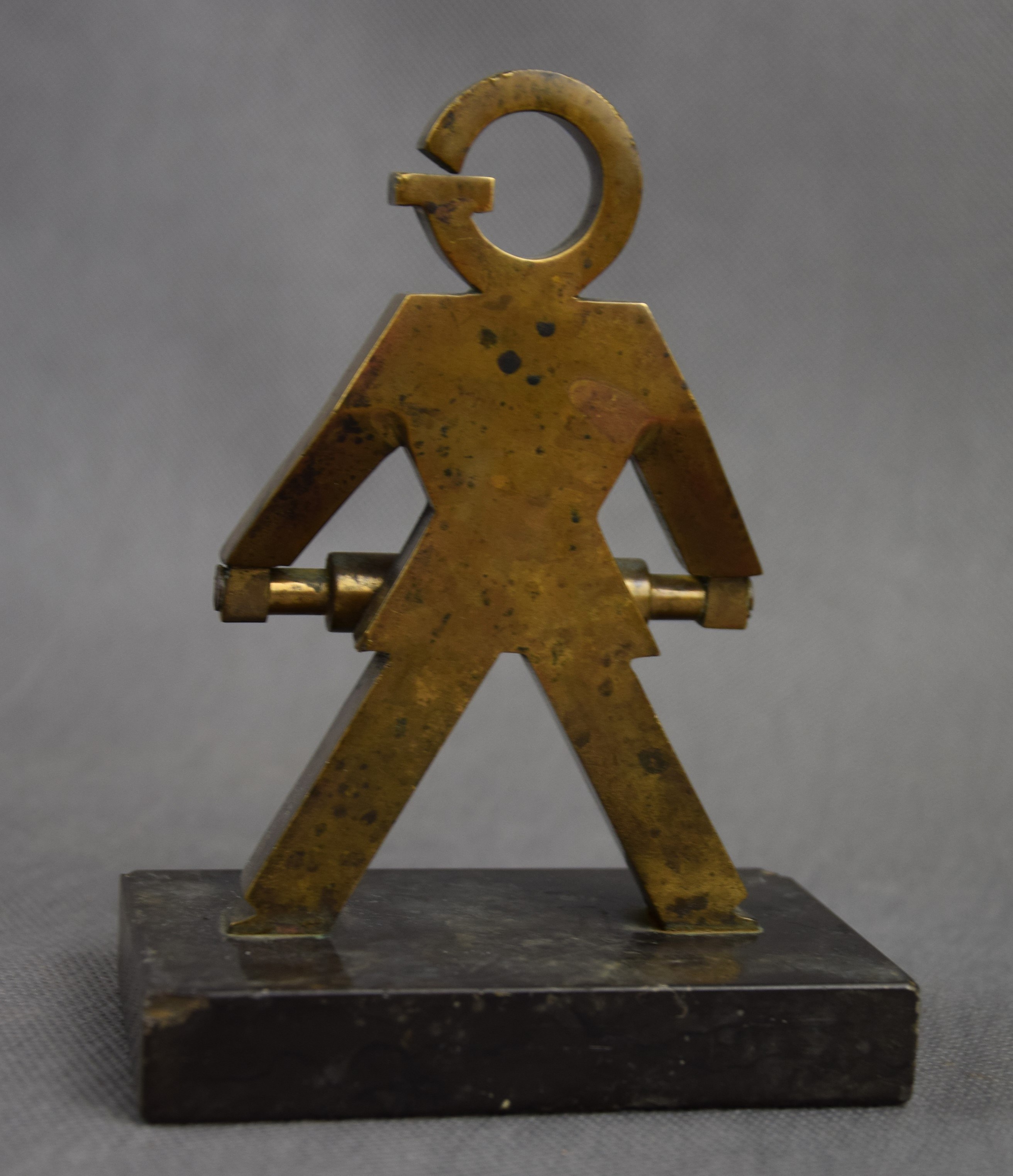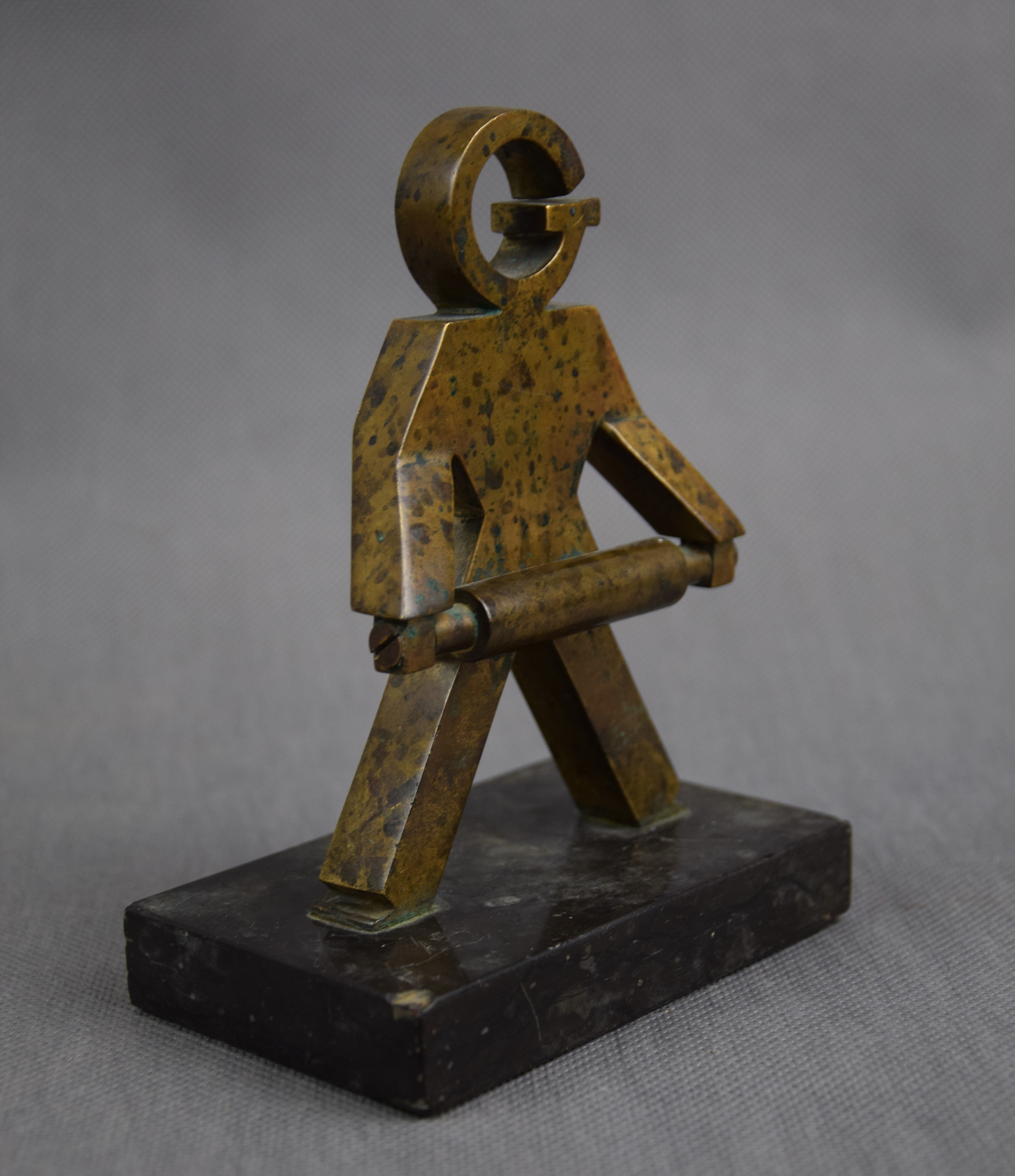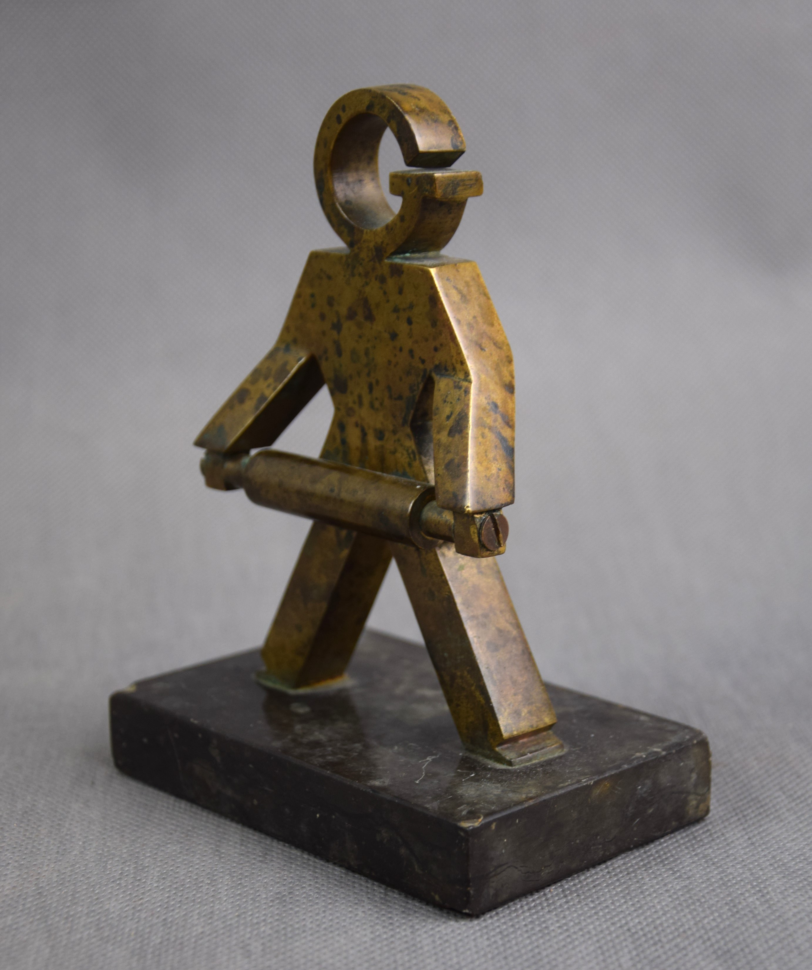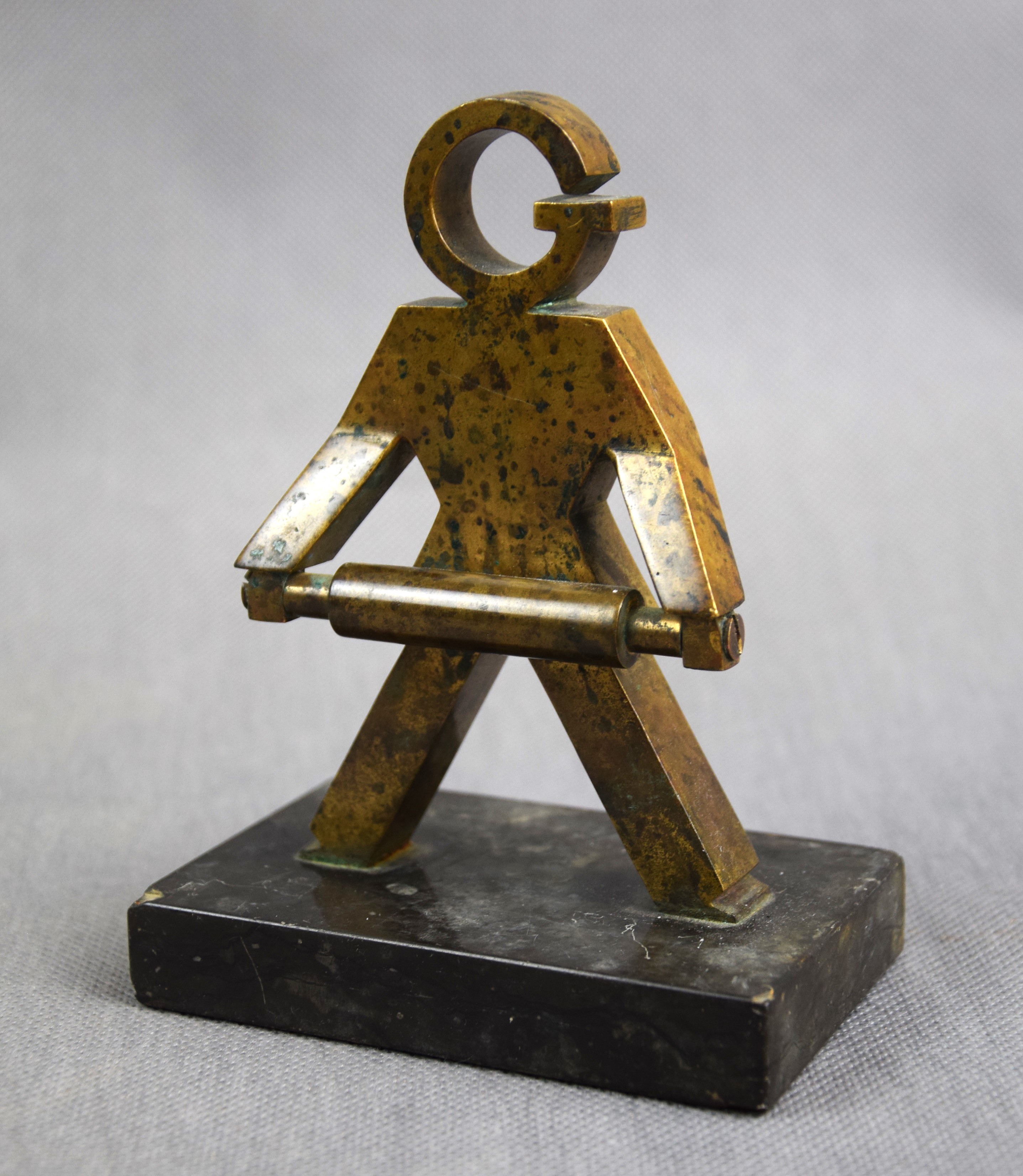 Figurka gabinetowa z kubistycznym ludzikiem z głową w formie litery G w stylistyce Art Deco.