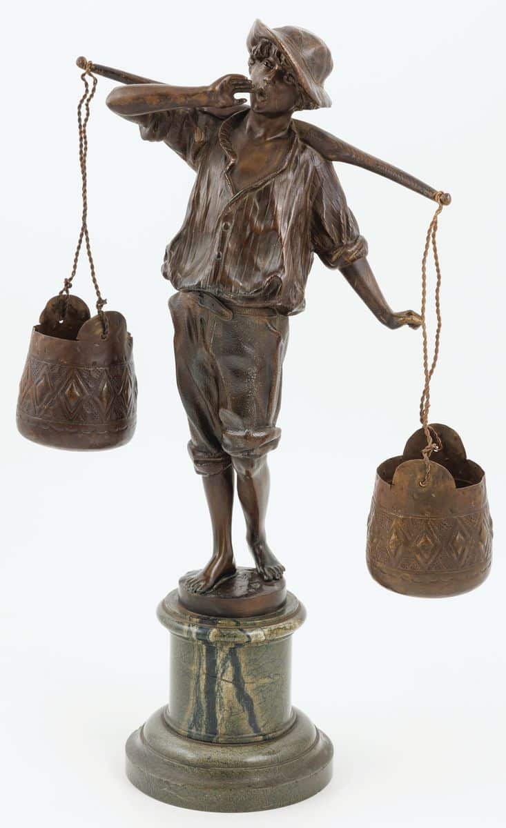 Brąz patynowany, wys. 29,5 cm, podstawa zielony marmur, wys. cłk. 39 cm