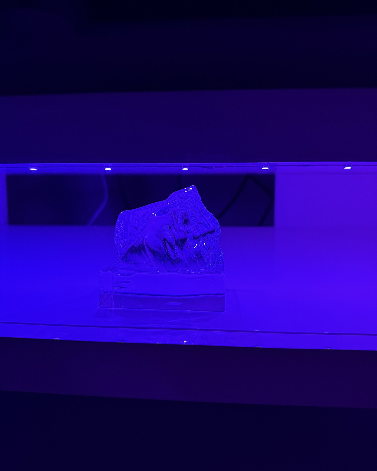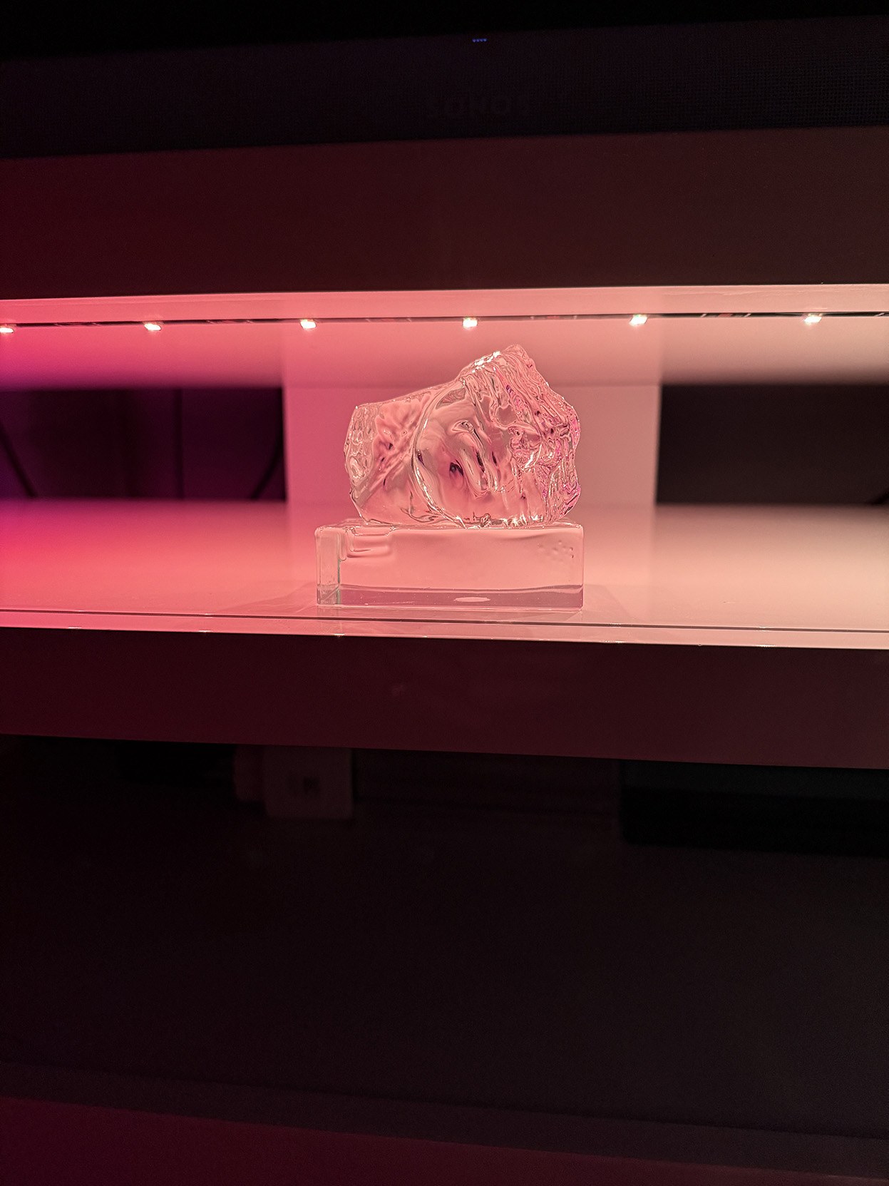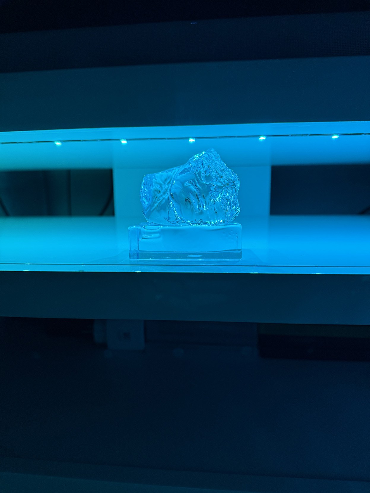 • Przezroczysta wersja rzeźby wykonana jest zazwyczaj z kryształu Daum, czyli szkła artystycznego formowanego techniką pâte de verre (szkło mielone i stapiane w formie). To specjalność tej manufaktury.