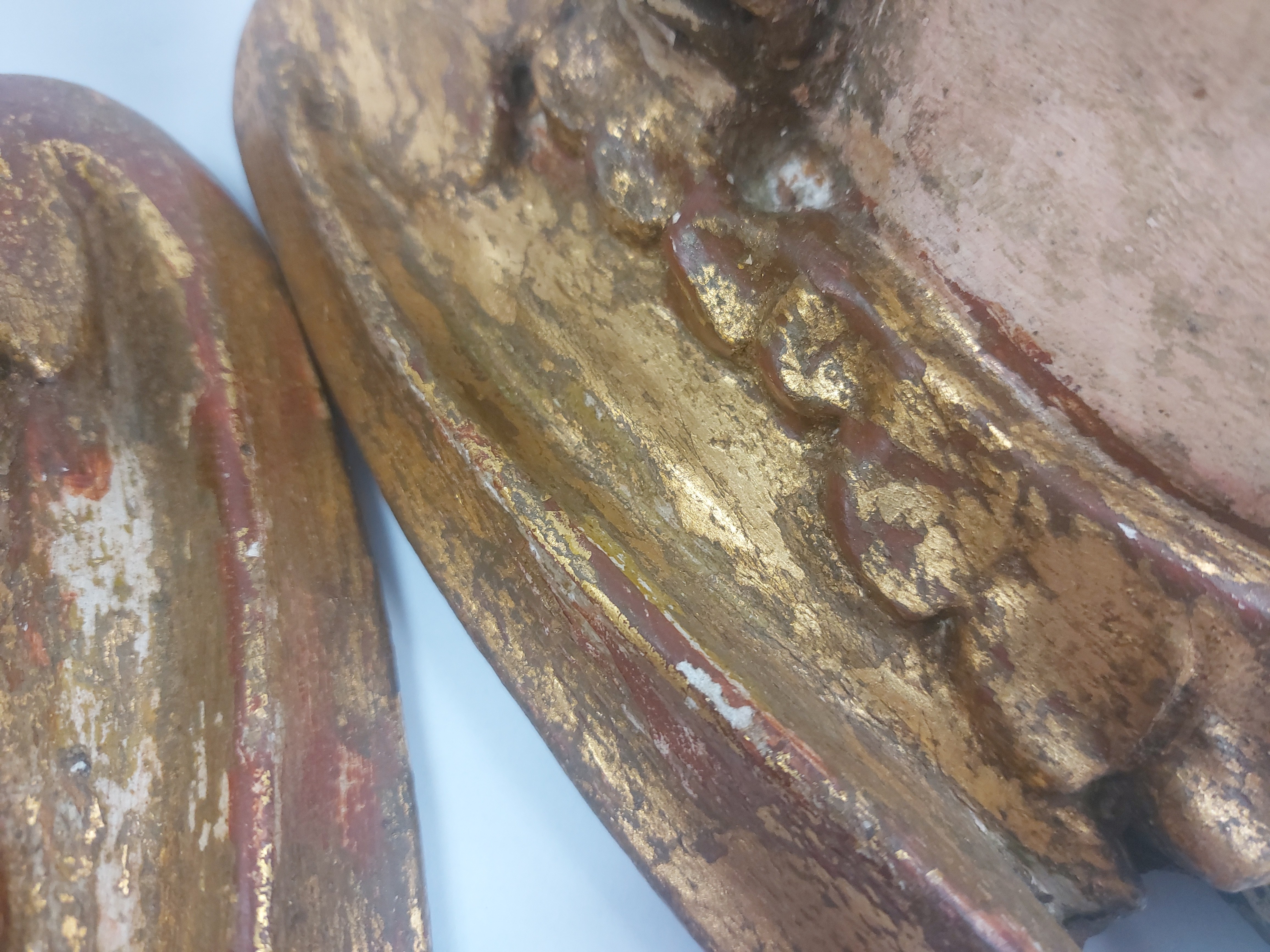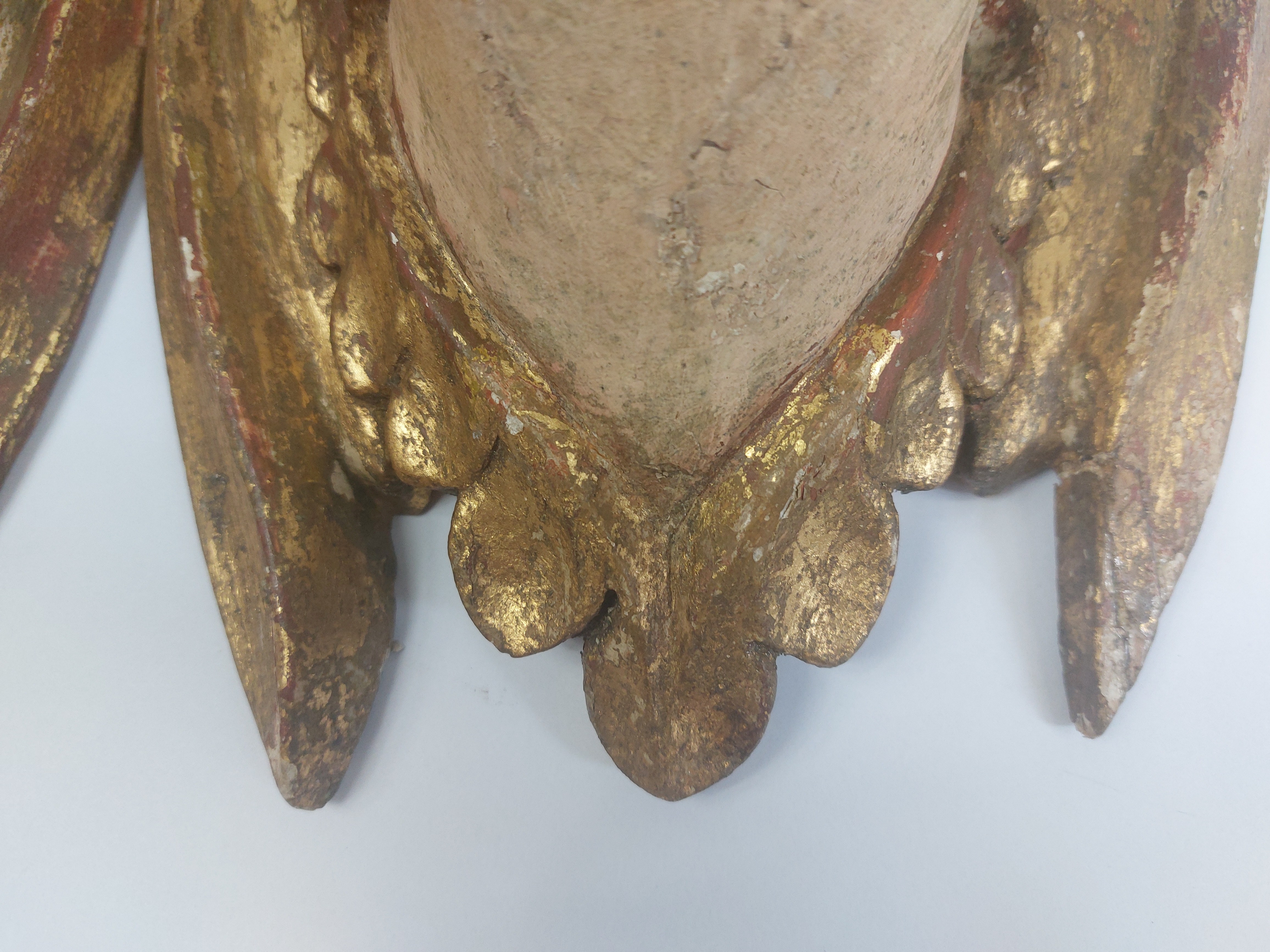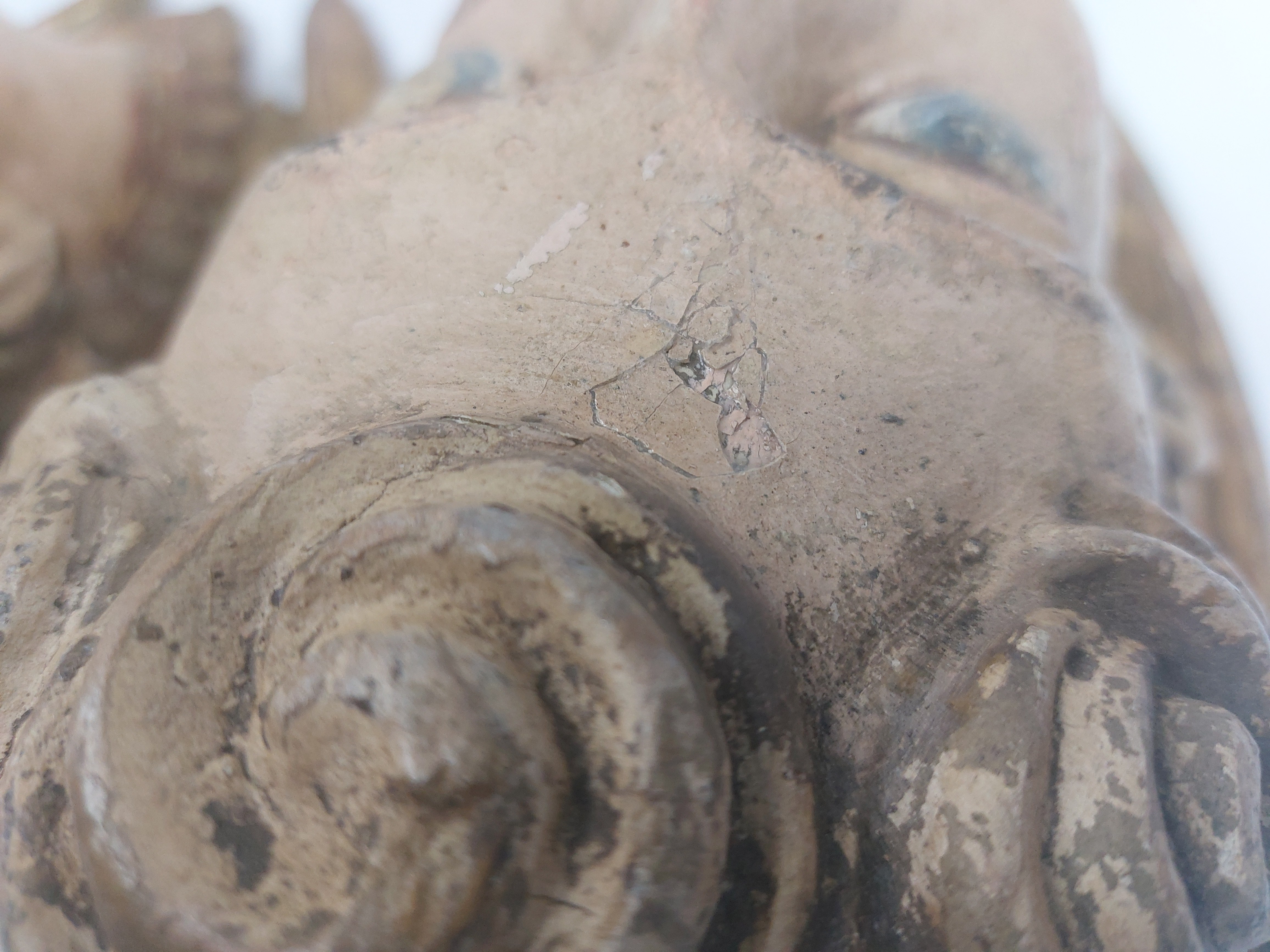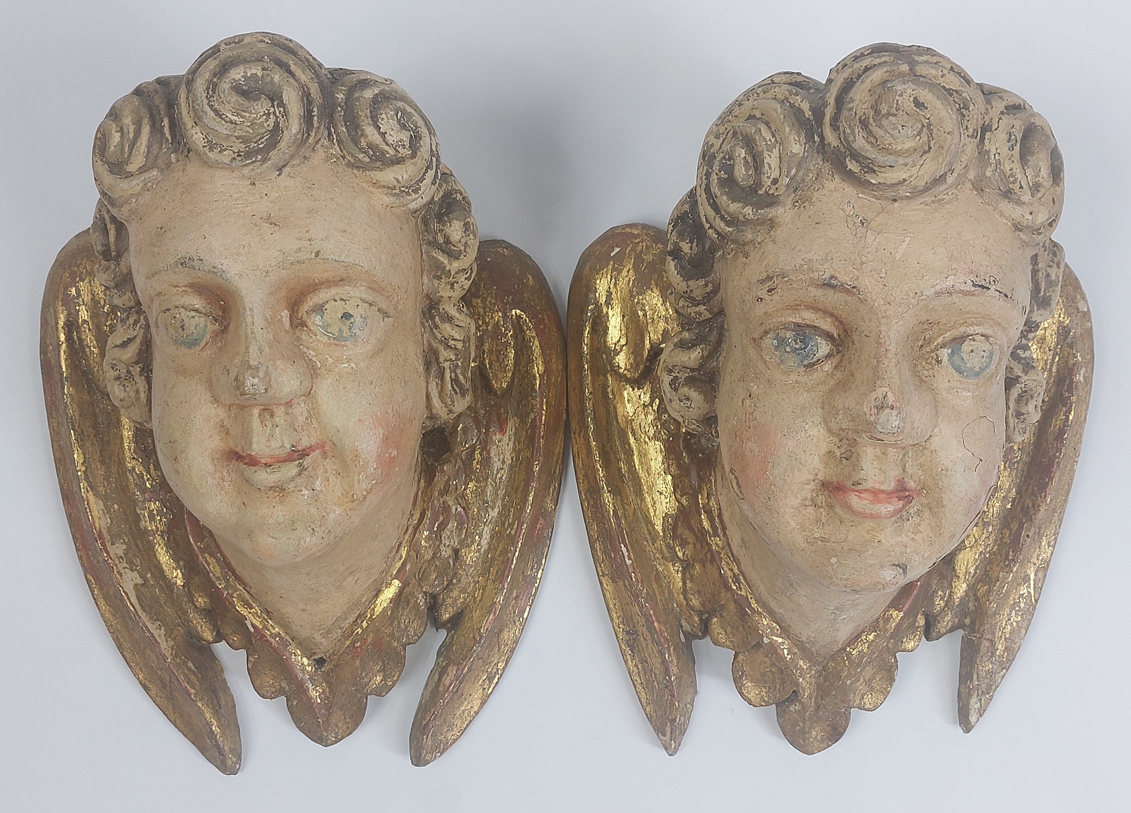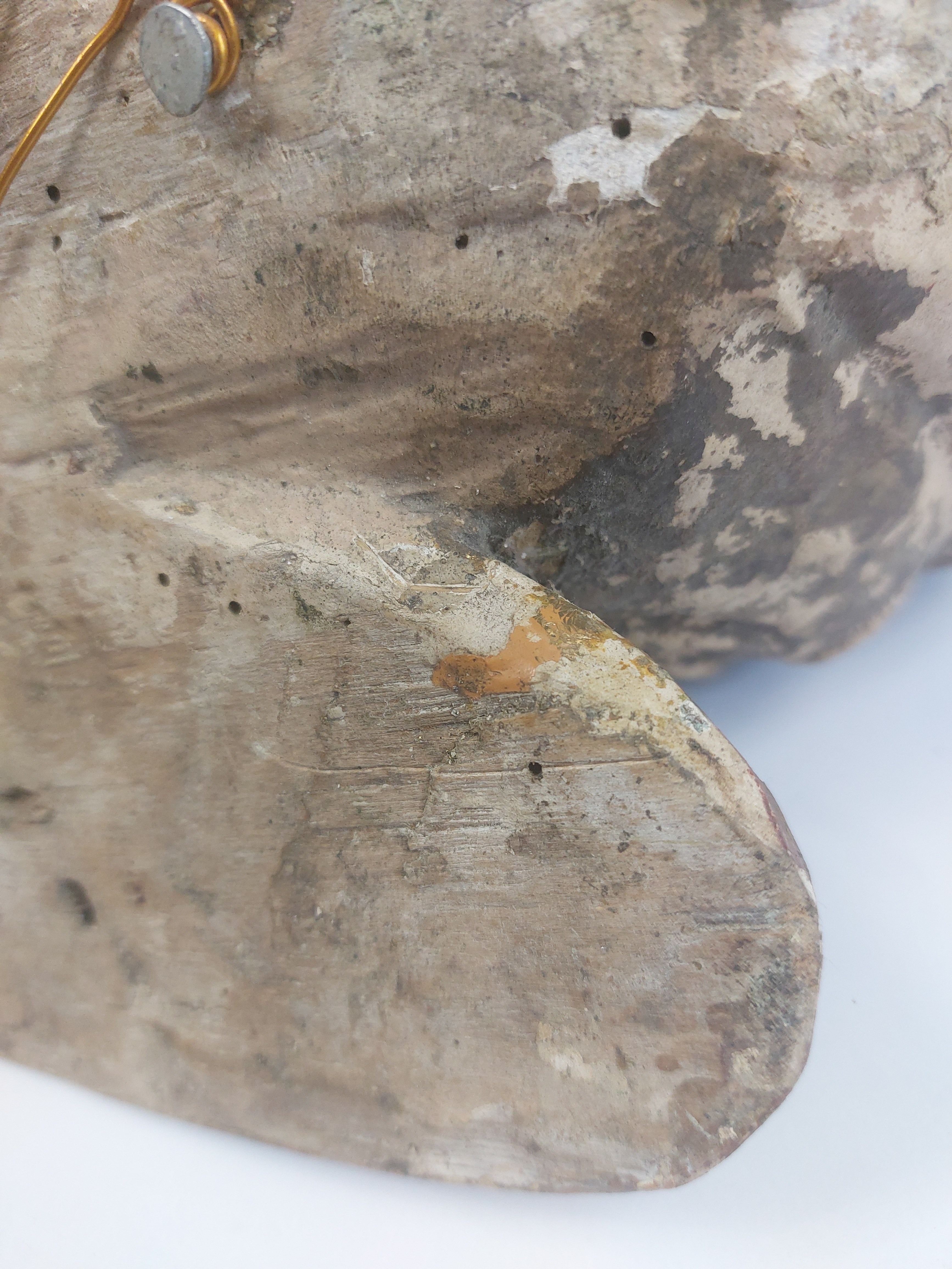 niewielkie ubytki pierwotnej polichromii widoczne na zdjęciach, ubytek na policzku, stan bardzo dobrze widoczny na zdjęciach