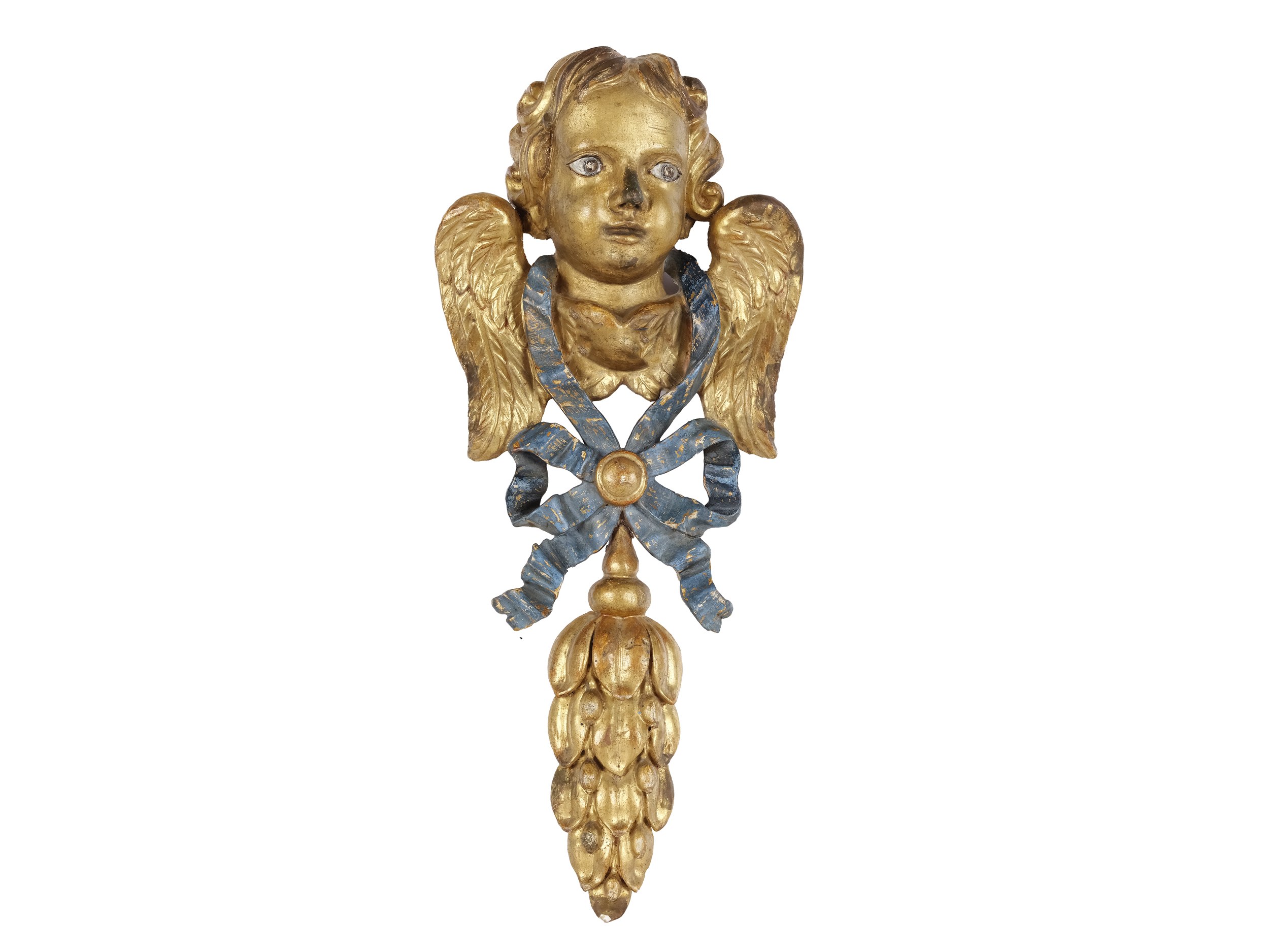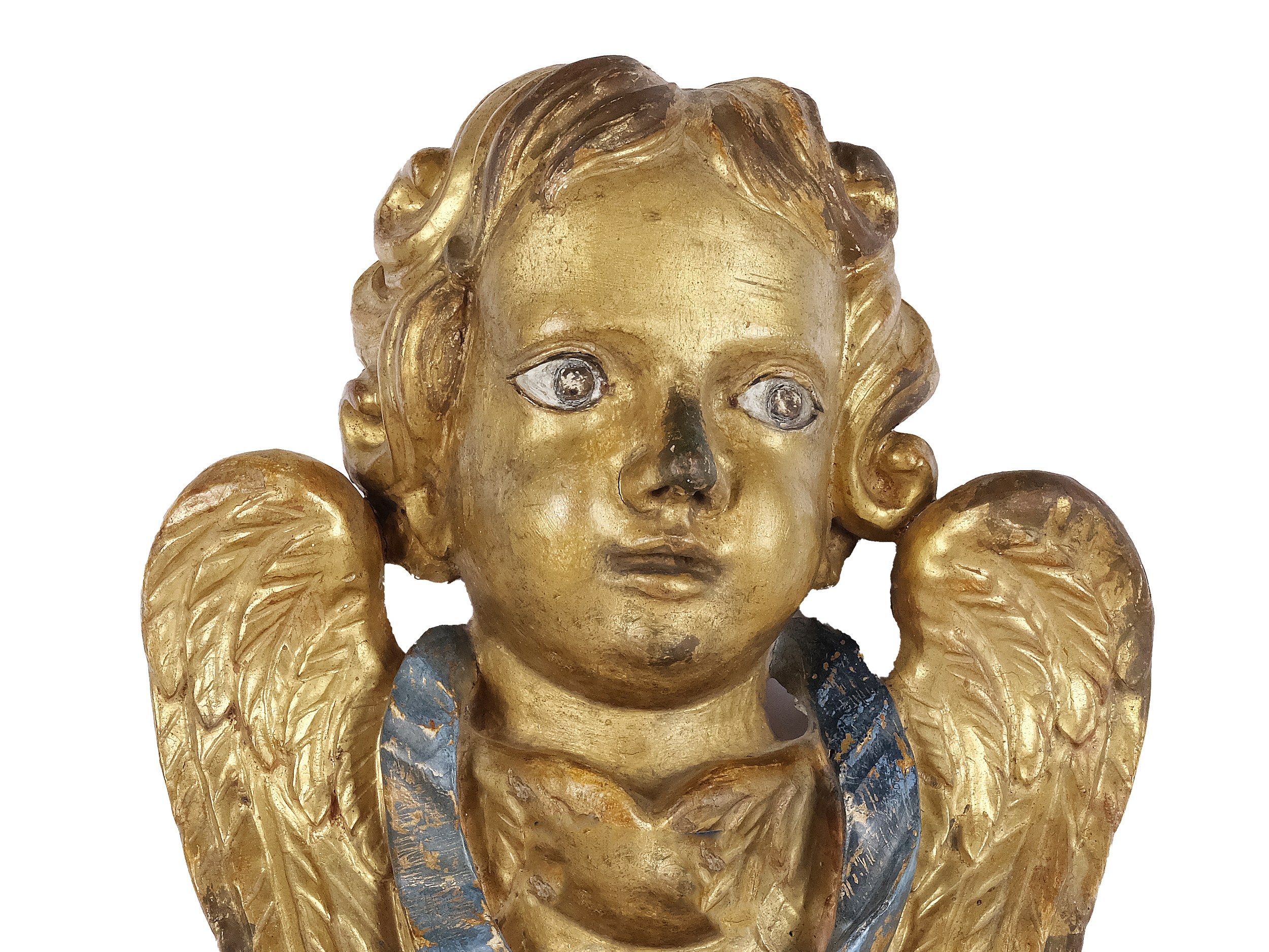 Angel's head, carved wood
