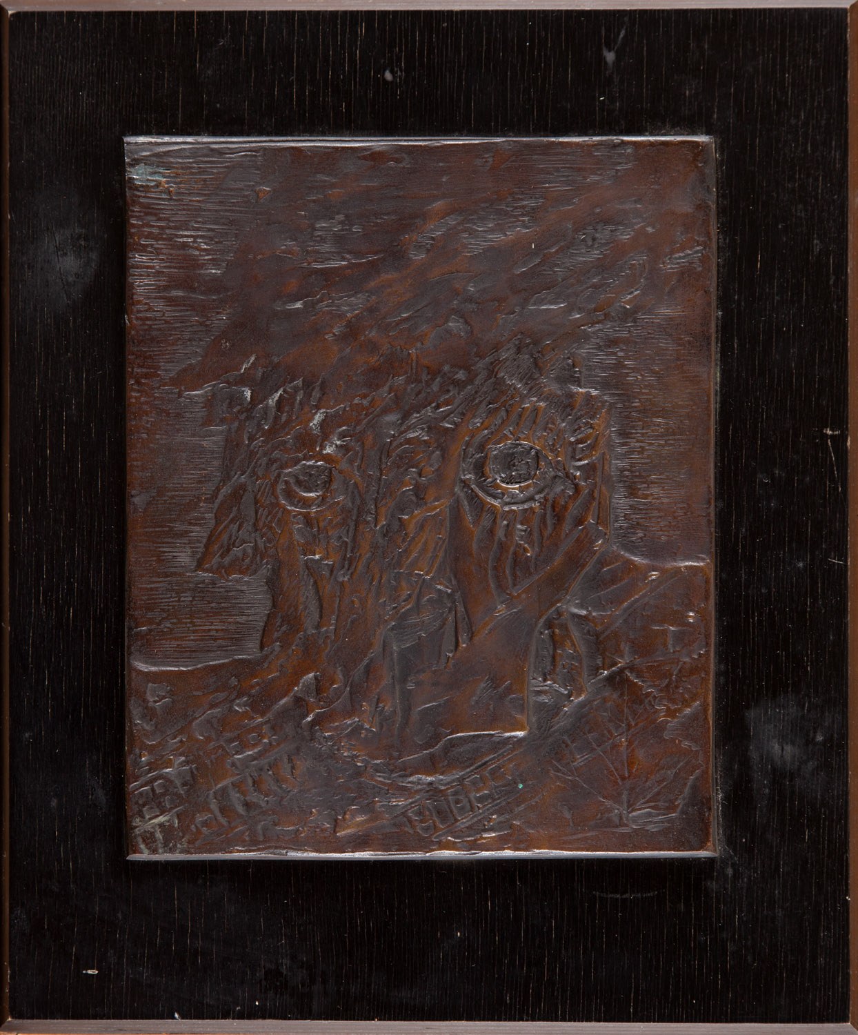 brąz, 22,5 x 18,5 cm (33 x 27 cm w oprawie); na odwrocie nalepka autorska z opisem pracy