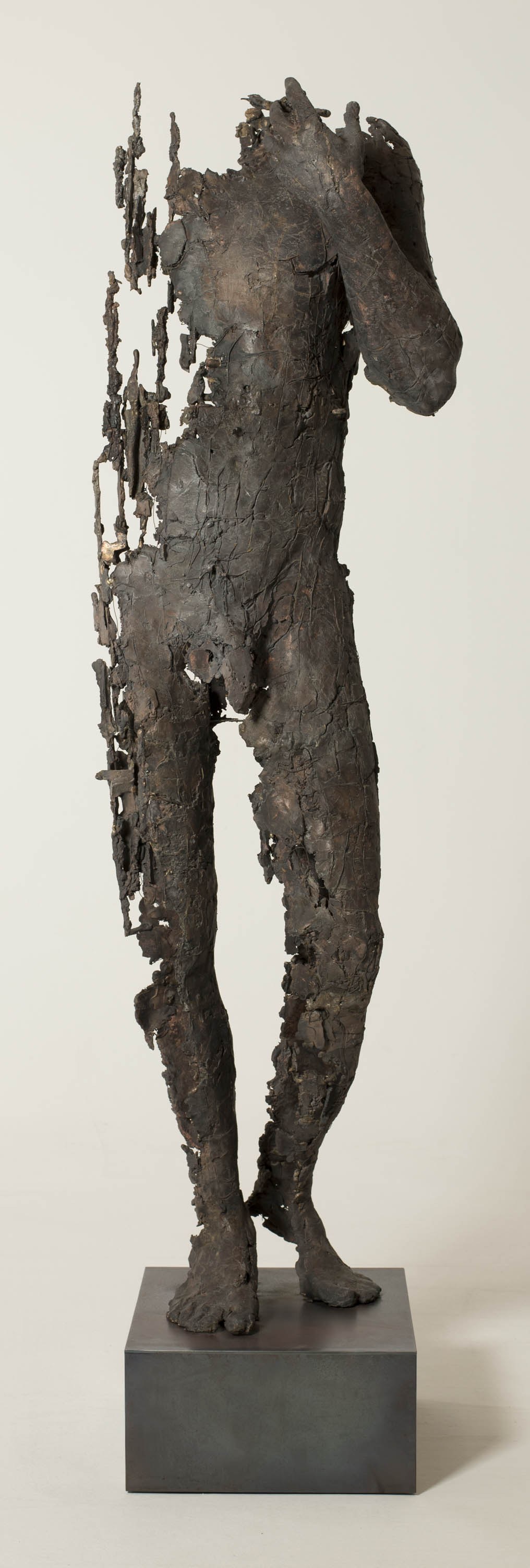 brąz patynowany (odlew techniką wosku traconego), postument stalowy, 171 x 46 x 43 cm, ed. 1/1 (unikat), sygnowany na lewej stopie