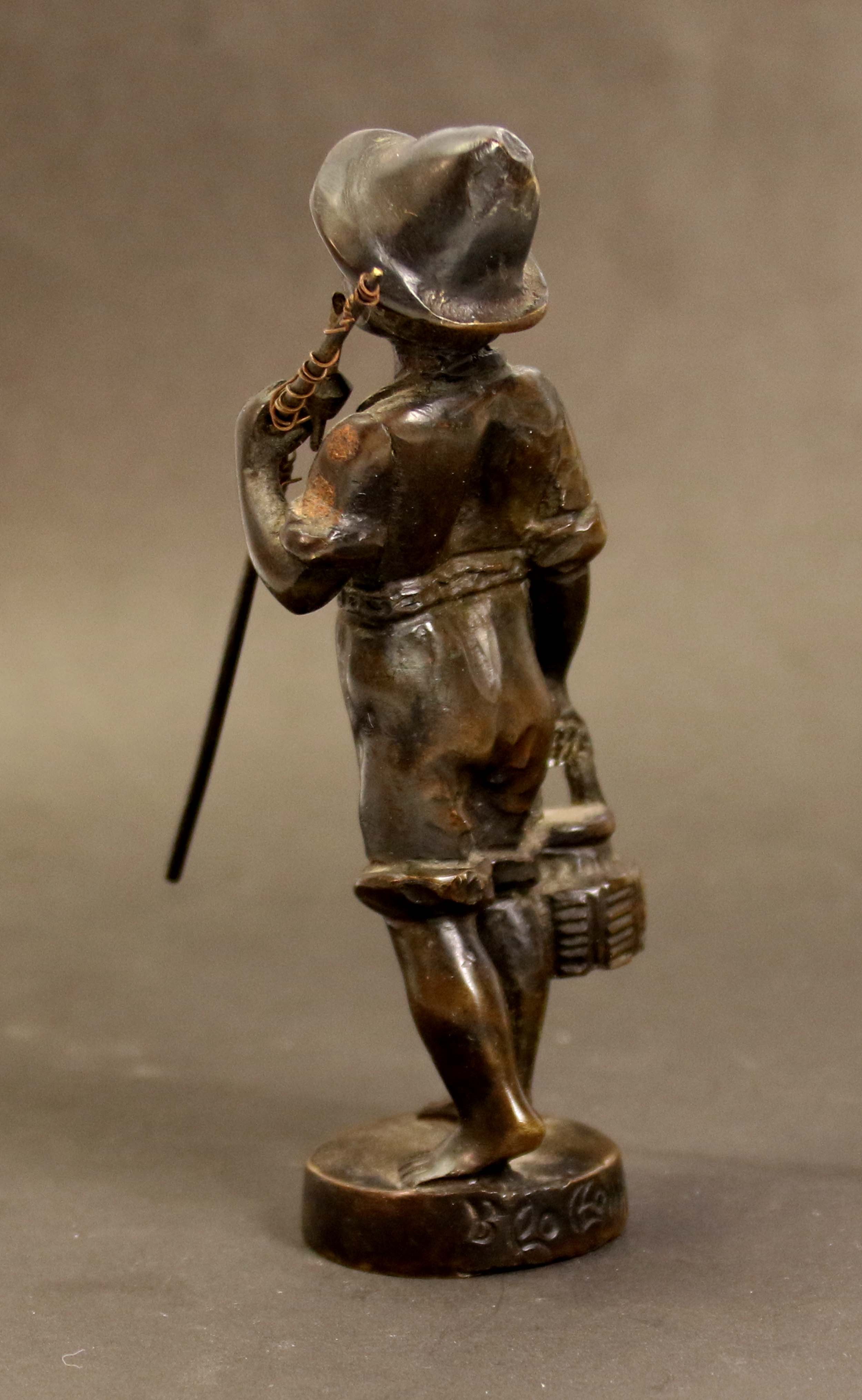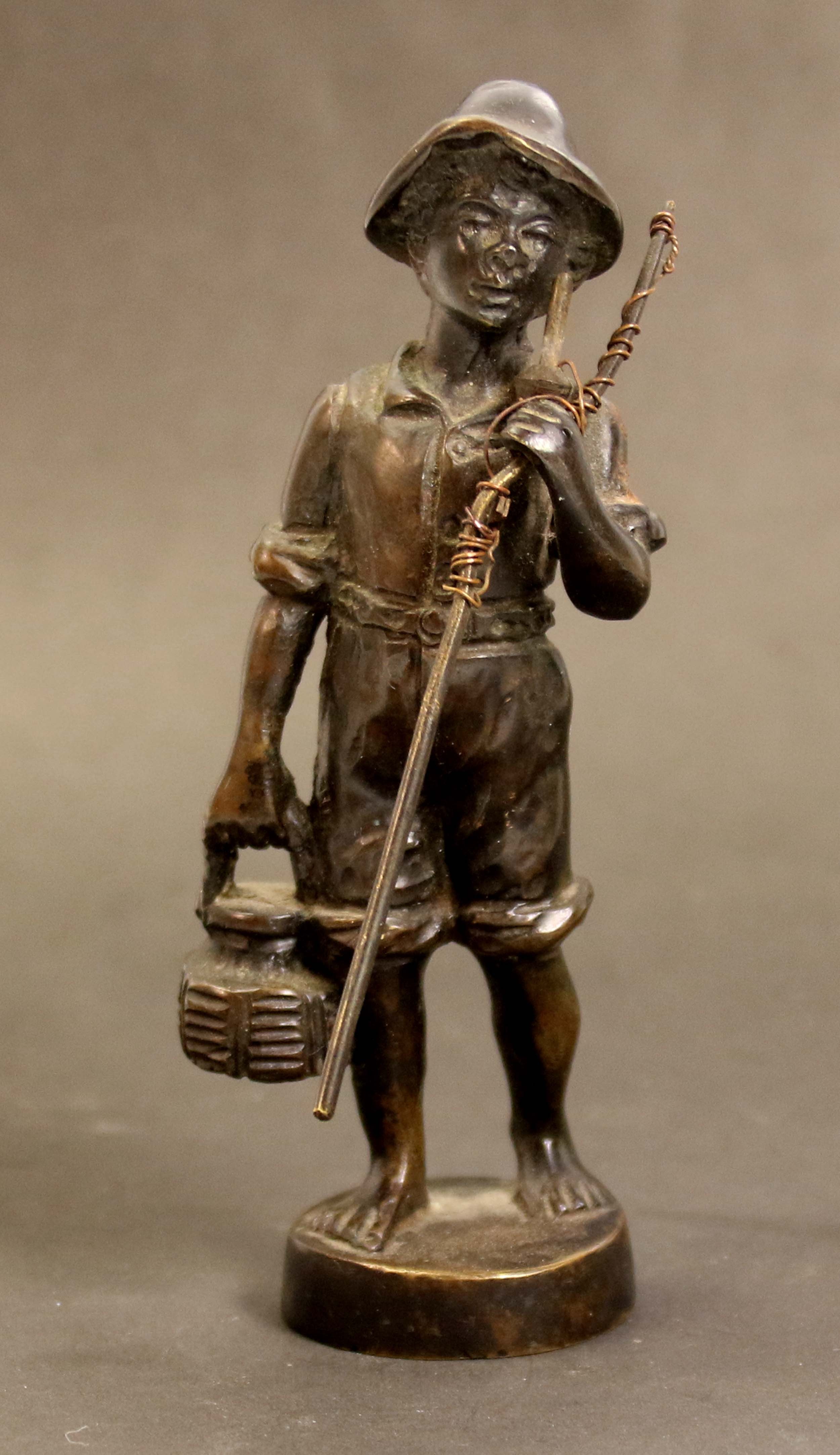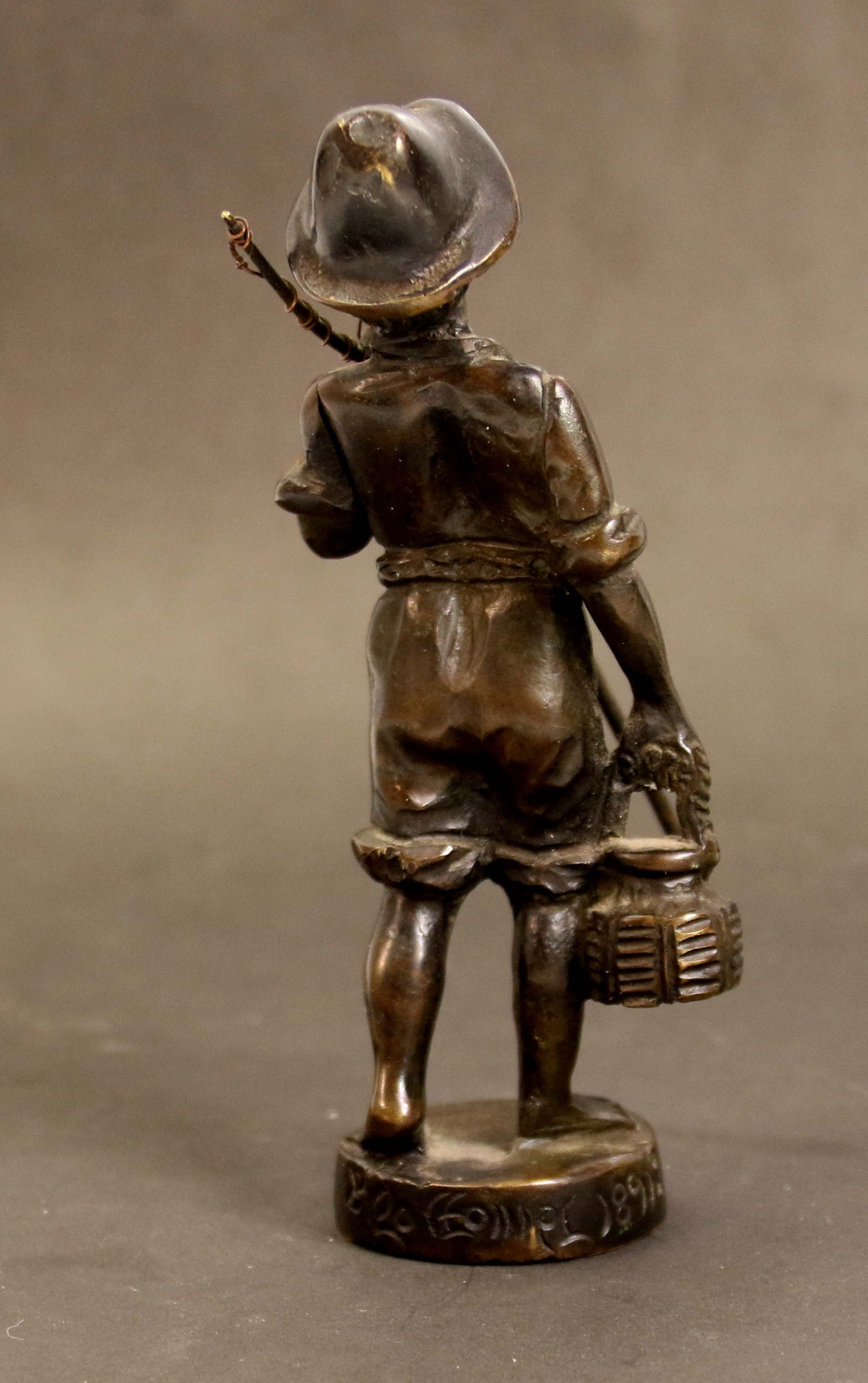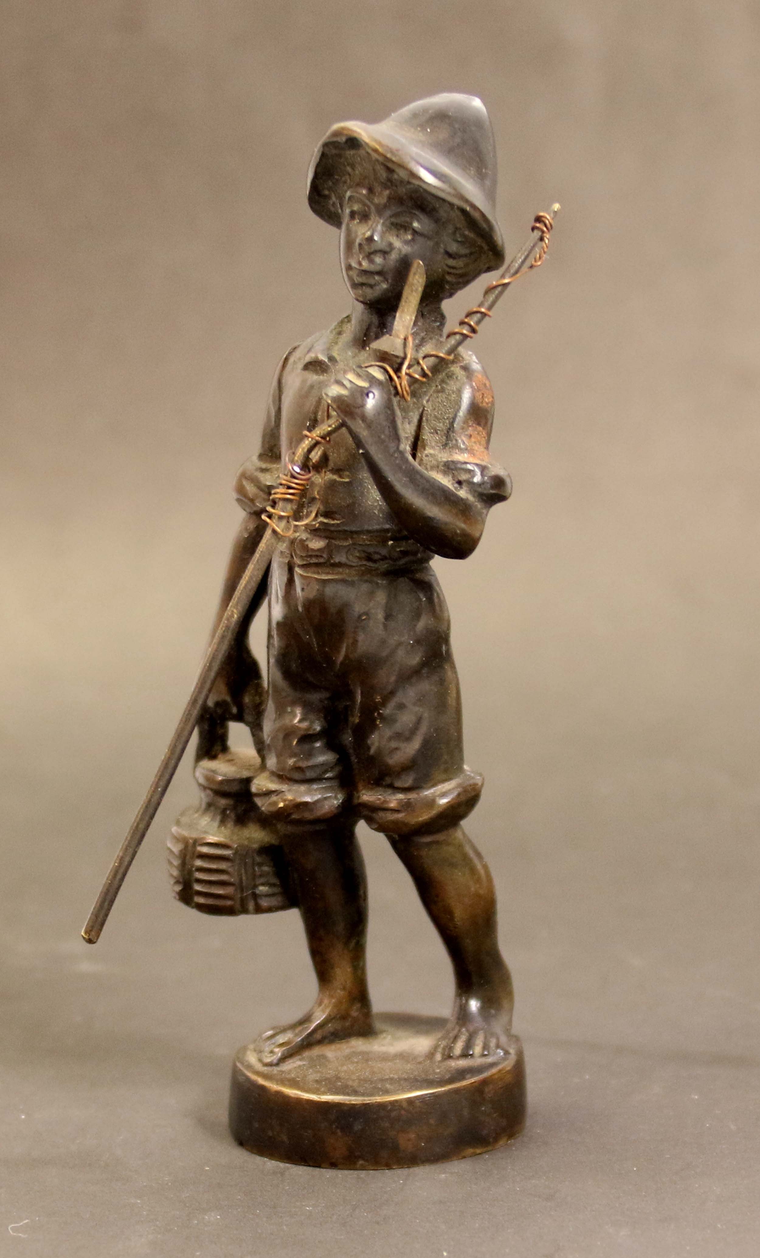 Chłopiec z wędką, brąz 1891 r., Sygnowana i datowana na podstawie, wym. 20 x 10 x 5,5 cm.