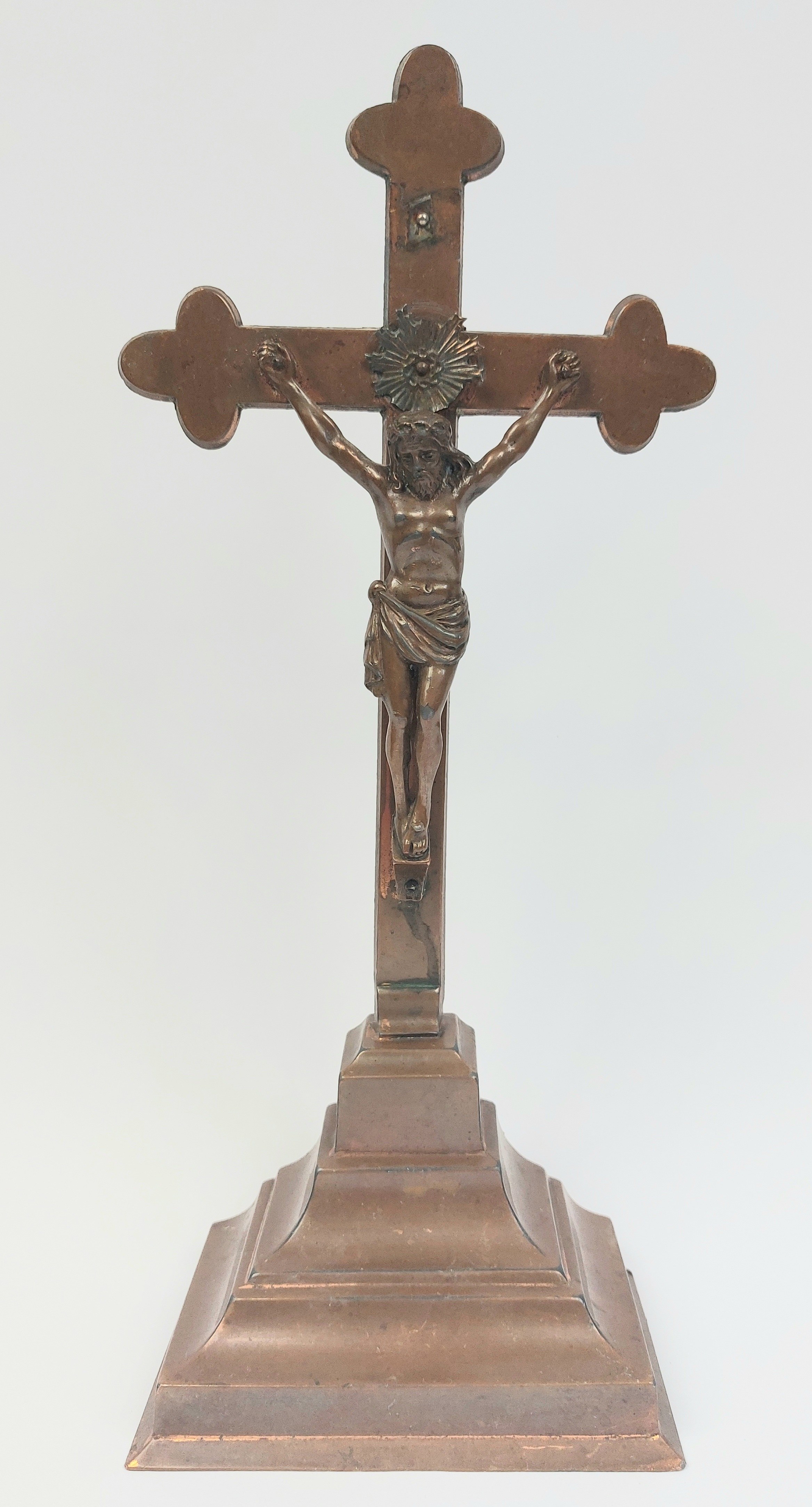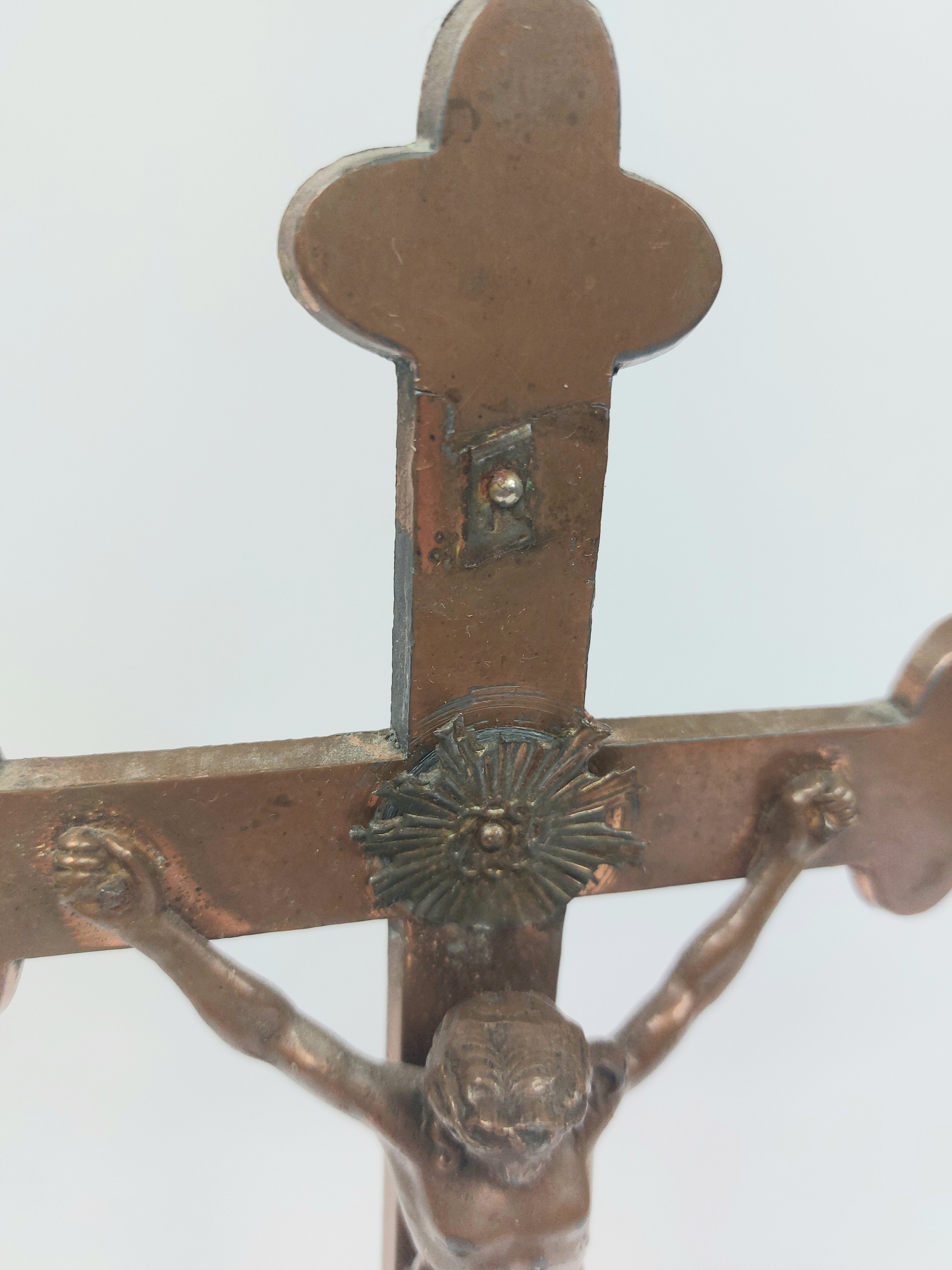 sygnowany na odwrocie, ubytki i uszkodzenia elementów przymocowanych do krzyża