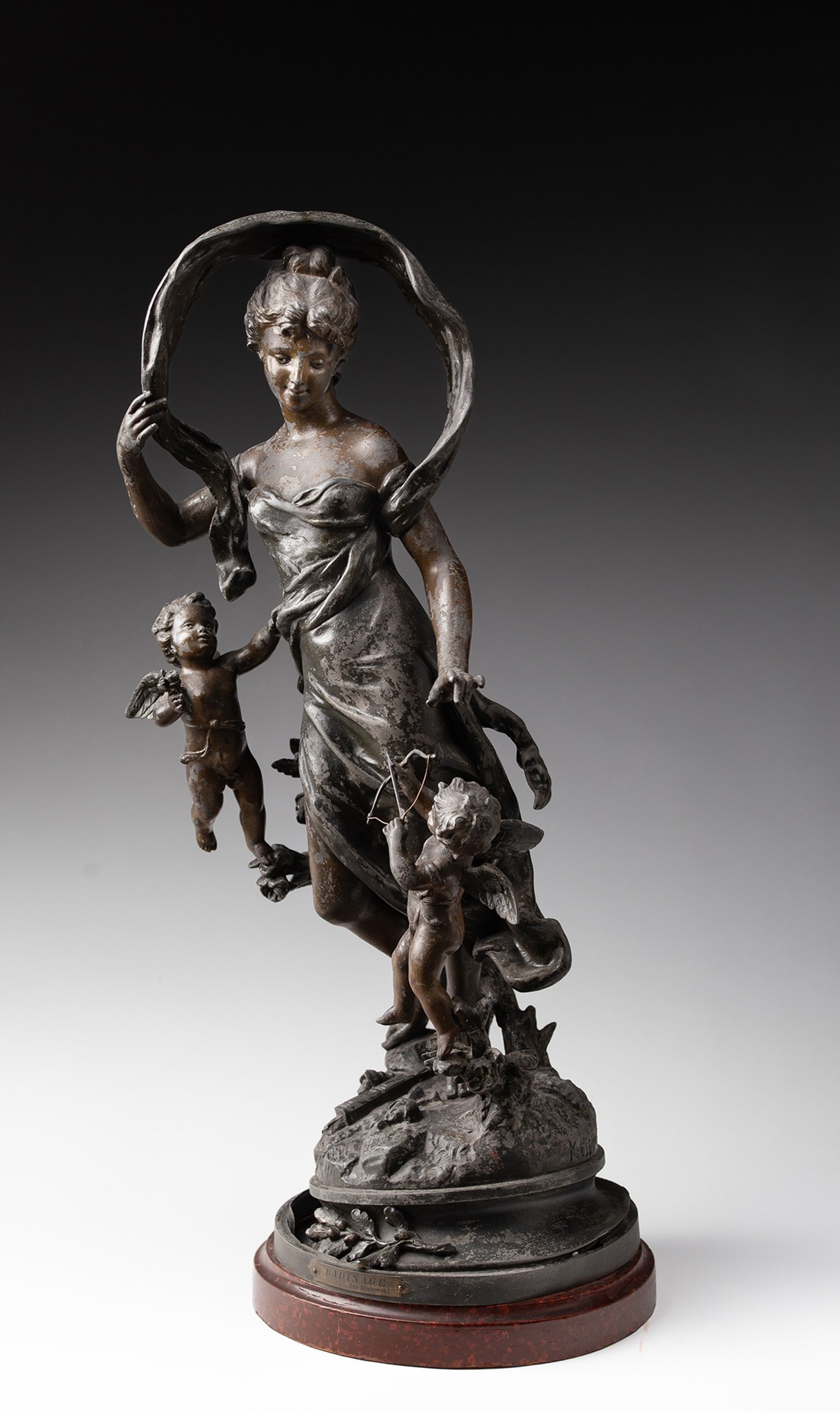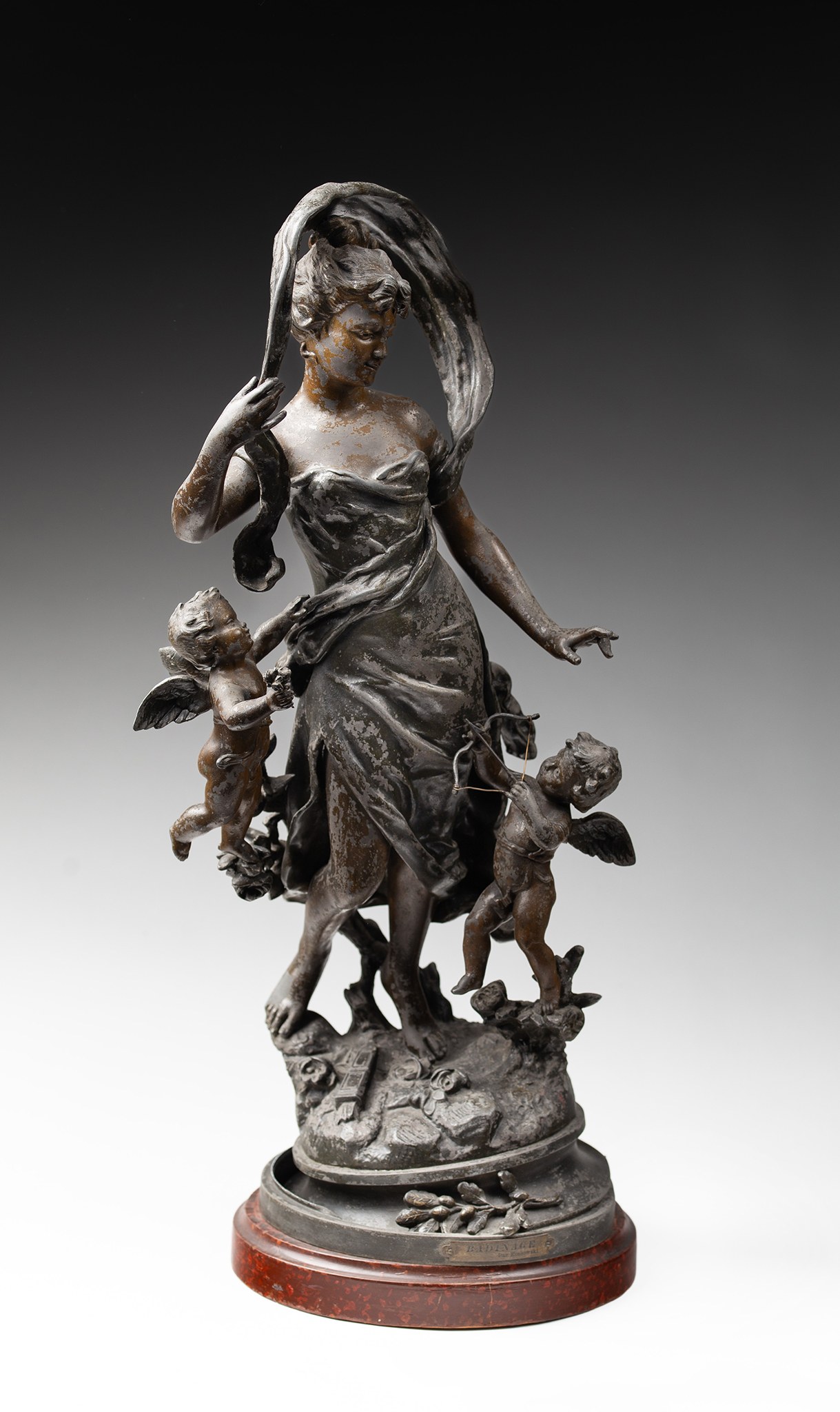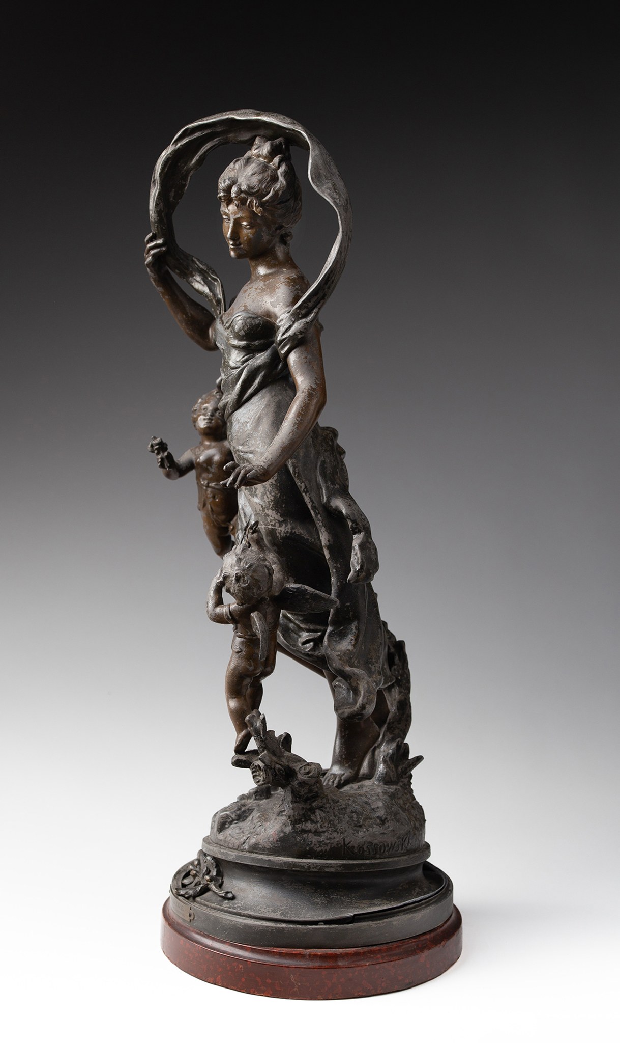 cynkal brązowiony, 65 x 26 x 24 cm, sygnowany na dole podstawy: "KOSSOWSKI".