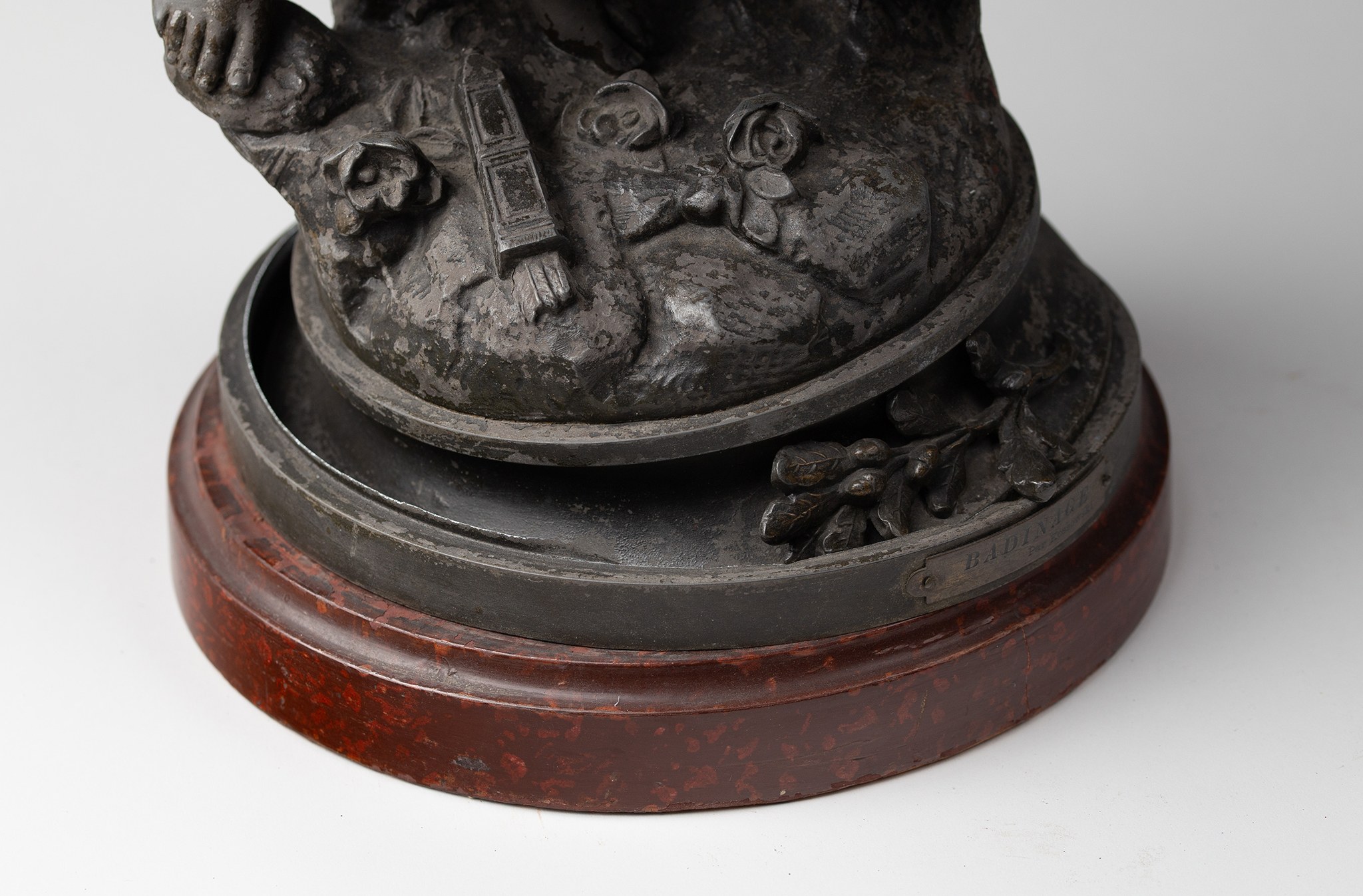 Stan zachowania: przetarcia i odpryski patyny, wgnieciona i pęknięta podstawa.