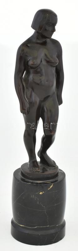 Sóváry János (1895-1966): Női akt. Patinázott bronz, márvány talapzaton. Jelzett: Sóváry J...