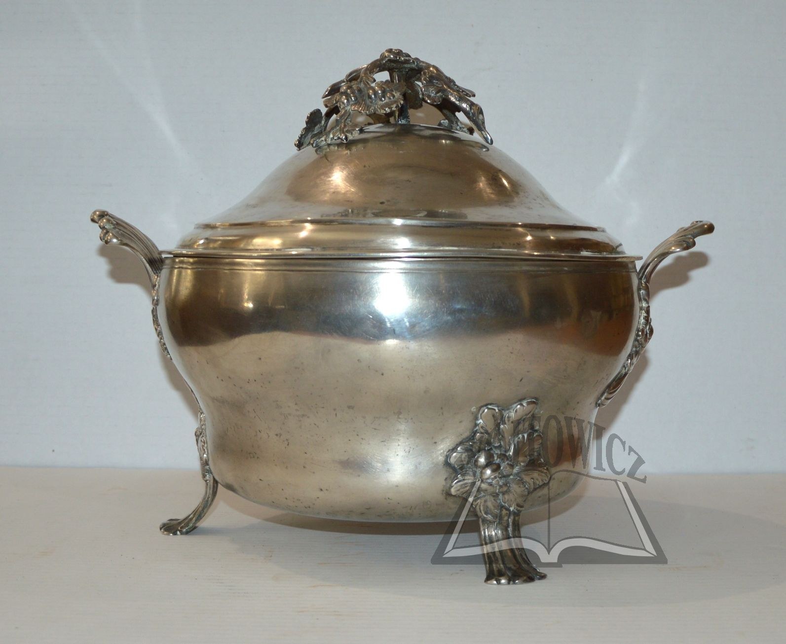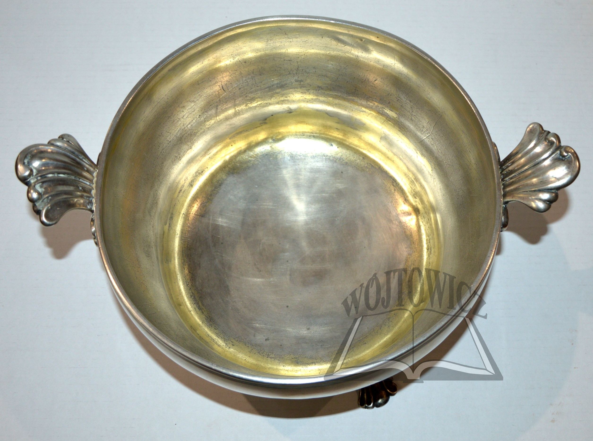 Warszawa, lata 70-te XVIII w. Sygn. "TP" (Teodor Pawłowicz) w owalu i próba "12", znak inwentarzowy. Wym.: 35 x 28 cm. Waga: ok. 3400 g., wewnątrz resztki złocenia ogniowego.