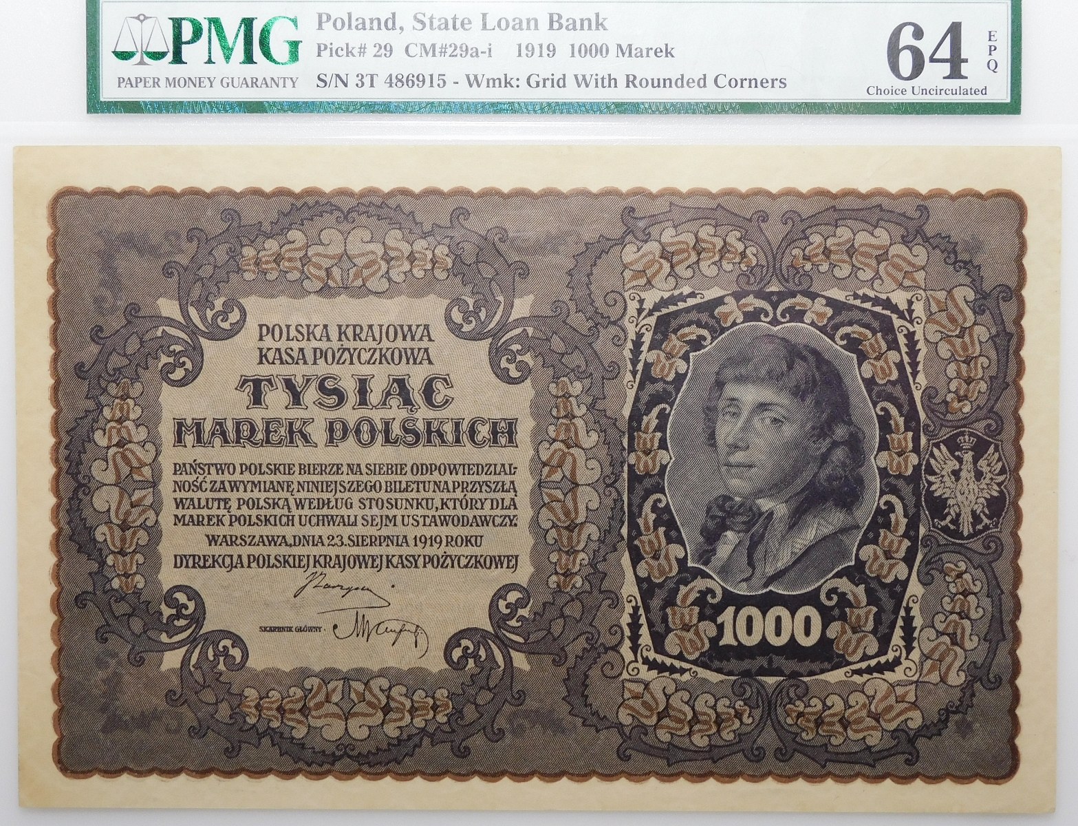 Atrakcyjny egzemplarz, potwierdzony wysoką notą gradingową PMG, z adnotacja EPQ świadcząca o wyjątkowej jakości papieru.